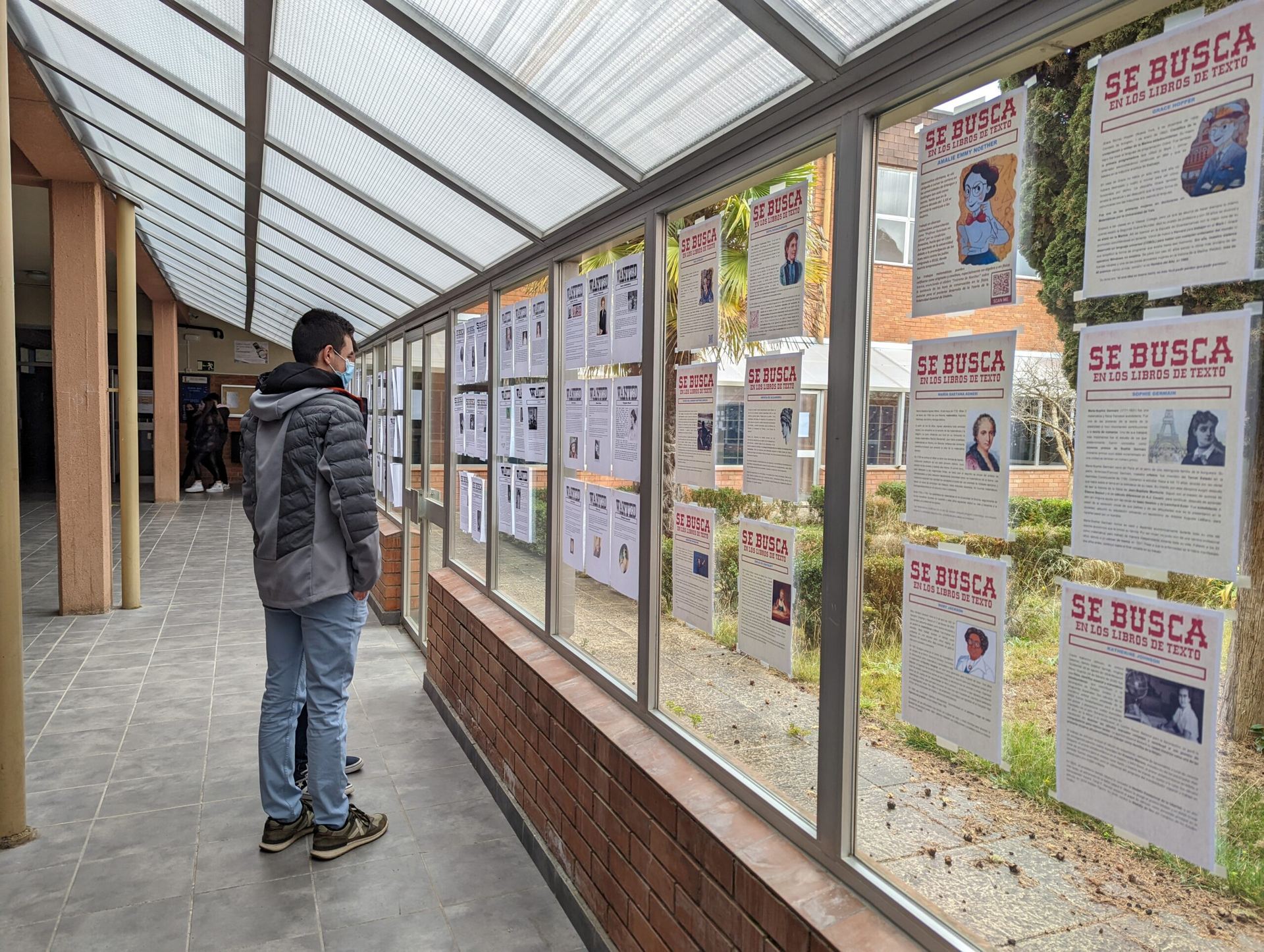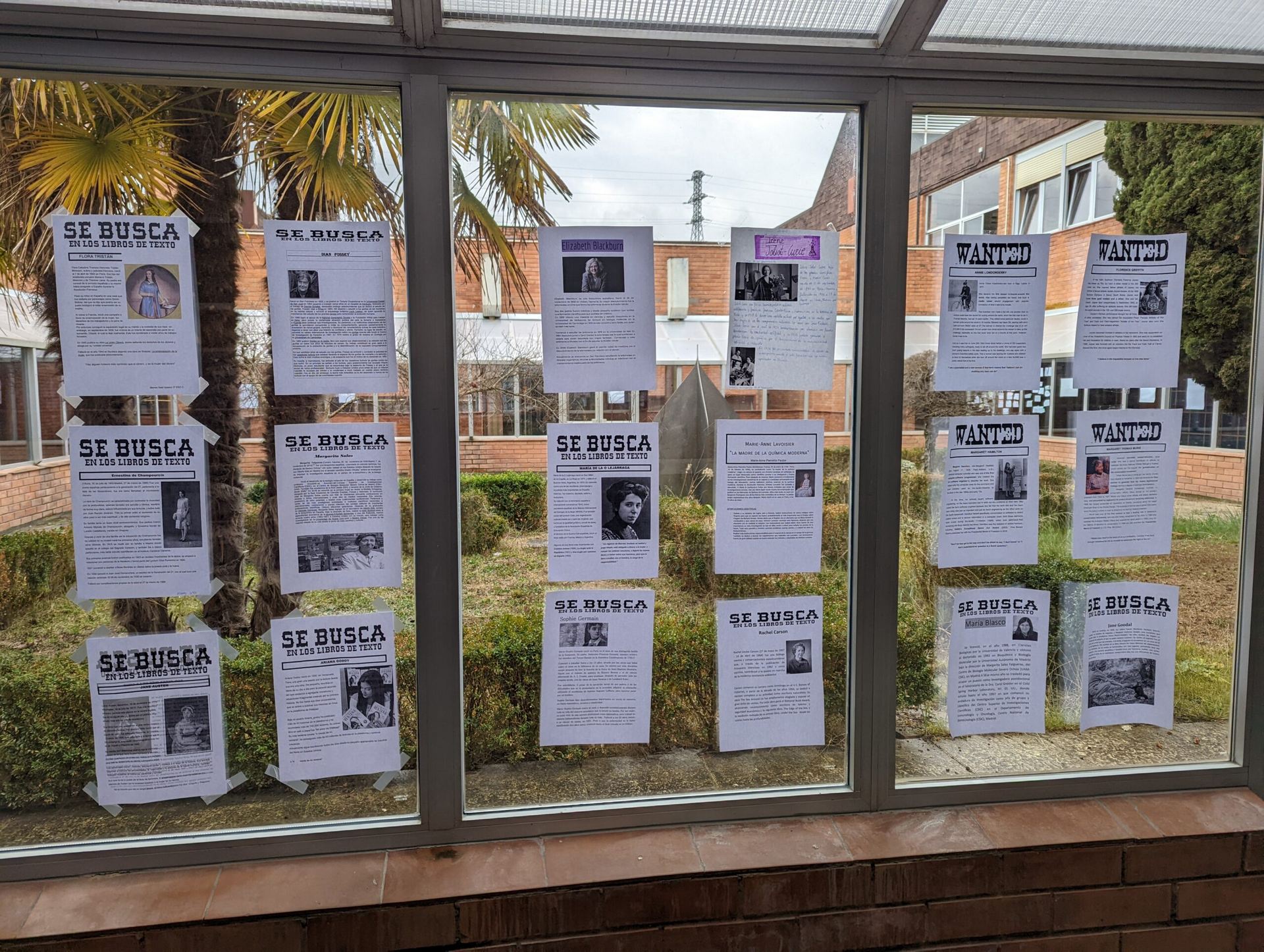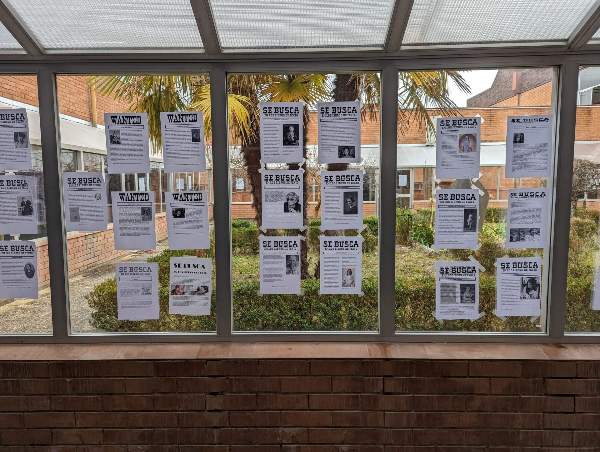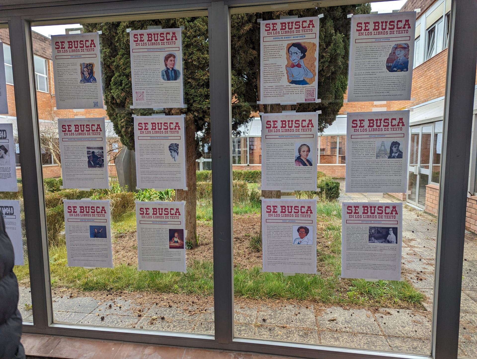 Propuesta inicialmente por el Departamento de Lengua y Literatura y secundada por los de Inglés, Francés y Matemáticas, la exposición «Se busca en los libros de texto» se ha podido visitar desde la semana pasada. Se trataba de rescatar de los libros de texto la biografía y logros de numerosas mujeres que han tenido un papel secundario en la historia. La muestra ha dignificado el papel histórico de numerosas científicas, matemáticas, literatas, compositoras, etc. Los alumnos han podido recorrerla estos días junto con sus profesores.