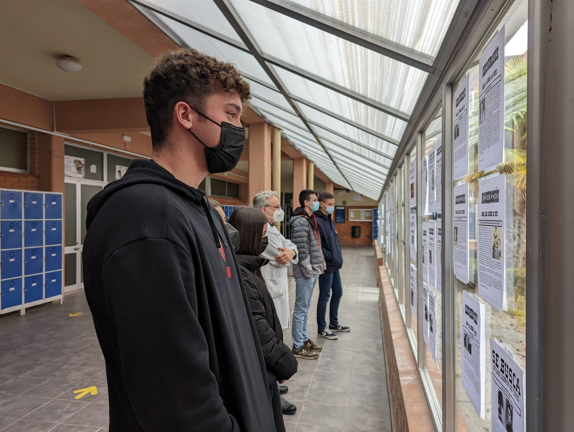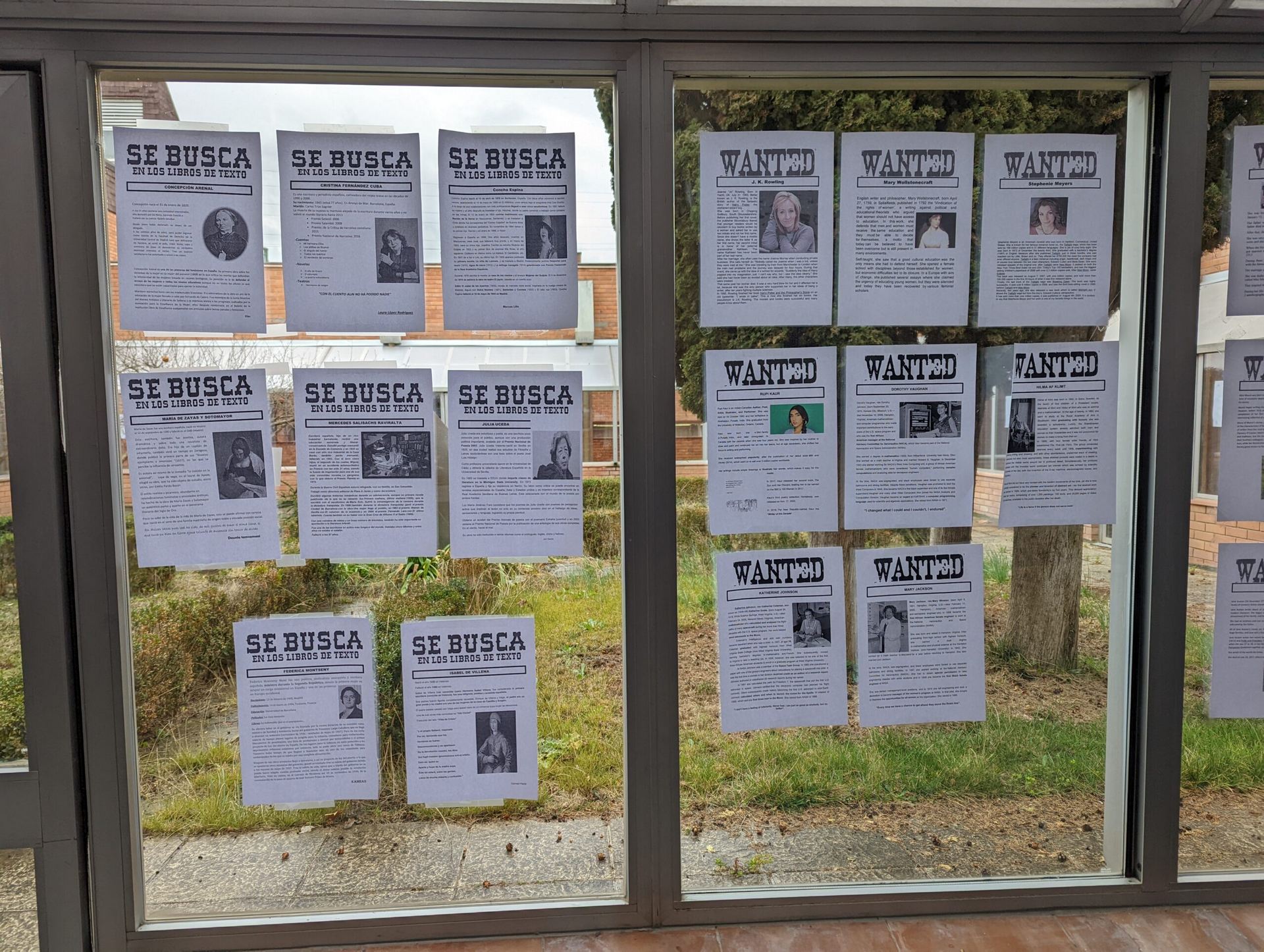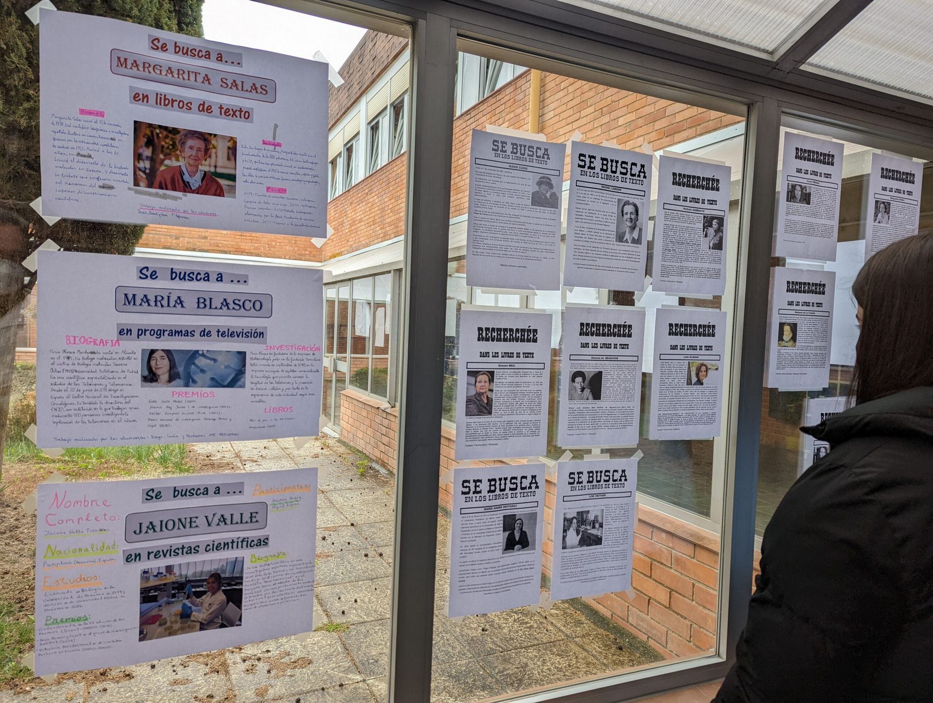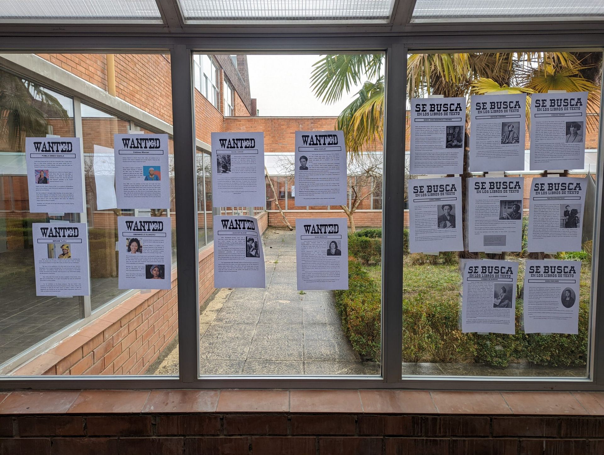 Propuesta inicialmente por el Departamento de Lengua y Literatura y secundada por los de Inglés, Francés y Matemáticas, la exposición «Se busca en los libros de texto» se ha podido visitar desde la semana pasada. Se trataba de rescatar de los libros de texto la biografía y logros de numerosas mujeres que han tenido un papel secundario en la historia. La muestra ha dignificado el papel histórico de numerosas científicas, matemáticas, literatas, compositoras, etc. Los alumnos han podido recorrerla estos días junto con sus profesores.