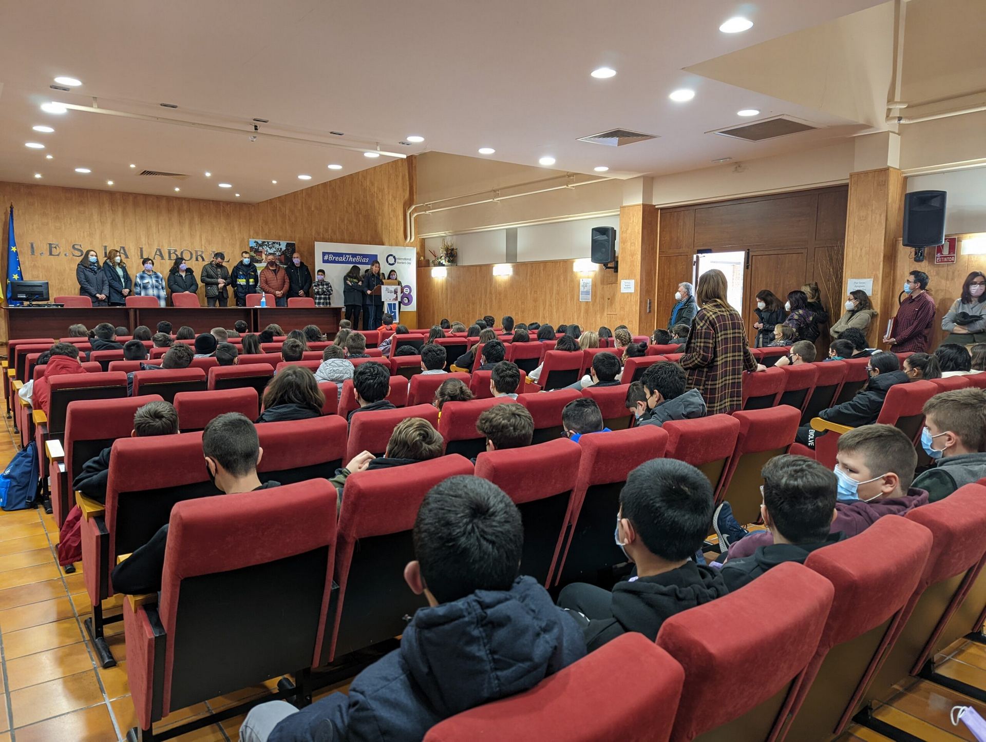 El Departamento de Inglés ha organizado un photocall para complementar las actividades propuestas por el Departamento de Orientación para tutoría, entre ellas la elaboración de pulseras moradas con mensajes personalizados por los alumnos.