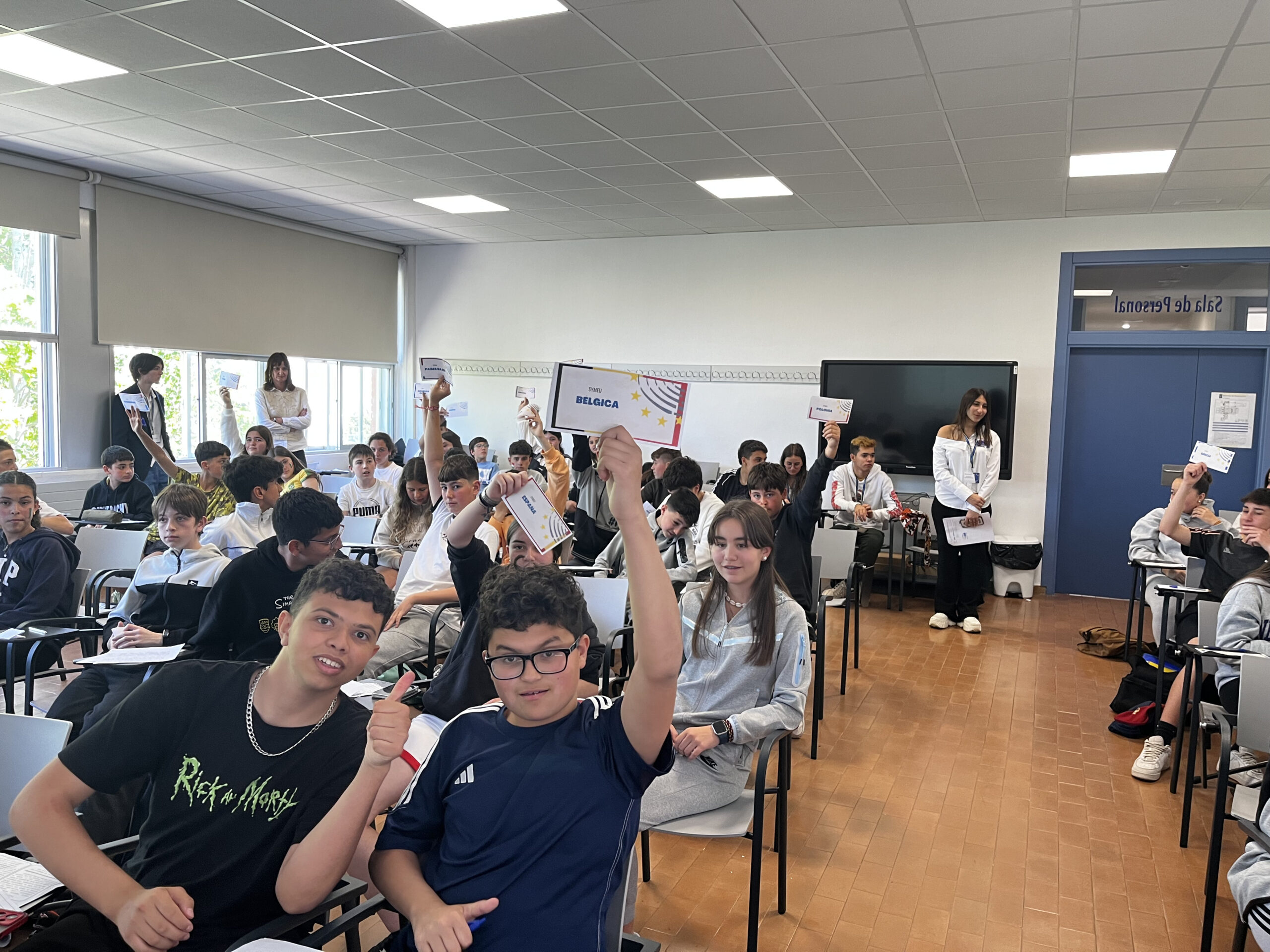 Además del Modelo que involucró a casi 400 alumnos, durante el recreo se proyectaron sendos reportajes. El primero de ellos, realizados por el alumnado de 2 ESO C y dirigidos por la profesora María Herreros, Embajadora Senior, mostraba la historia y particularidades de las diferentes lenguas europeas. Tras ello, se proyectaron los reportajes sobre problemáticas sociales que amenazan la estabilidad de las naciones europeas, desarrollados por los alumnos del Proyecto Bilingüe de 2º de ESO.
