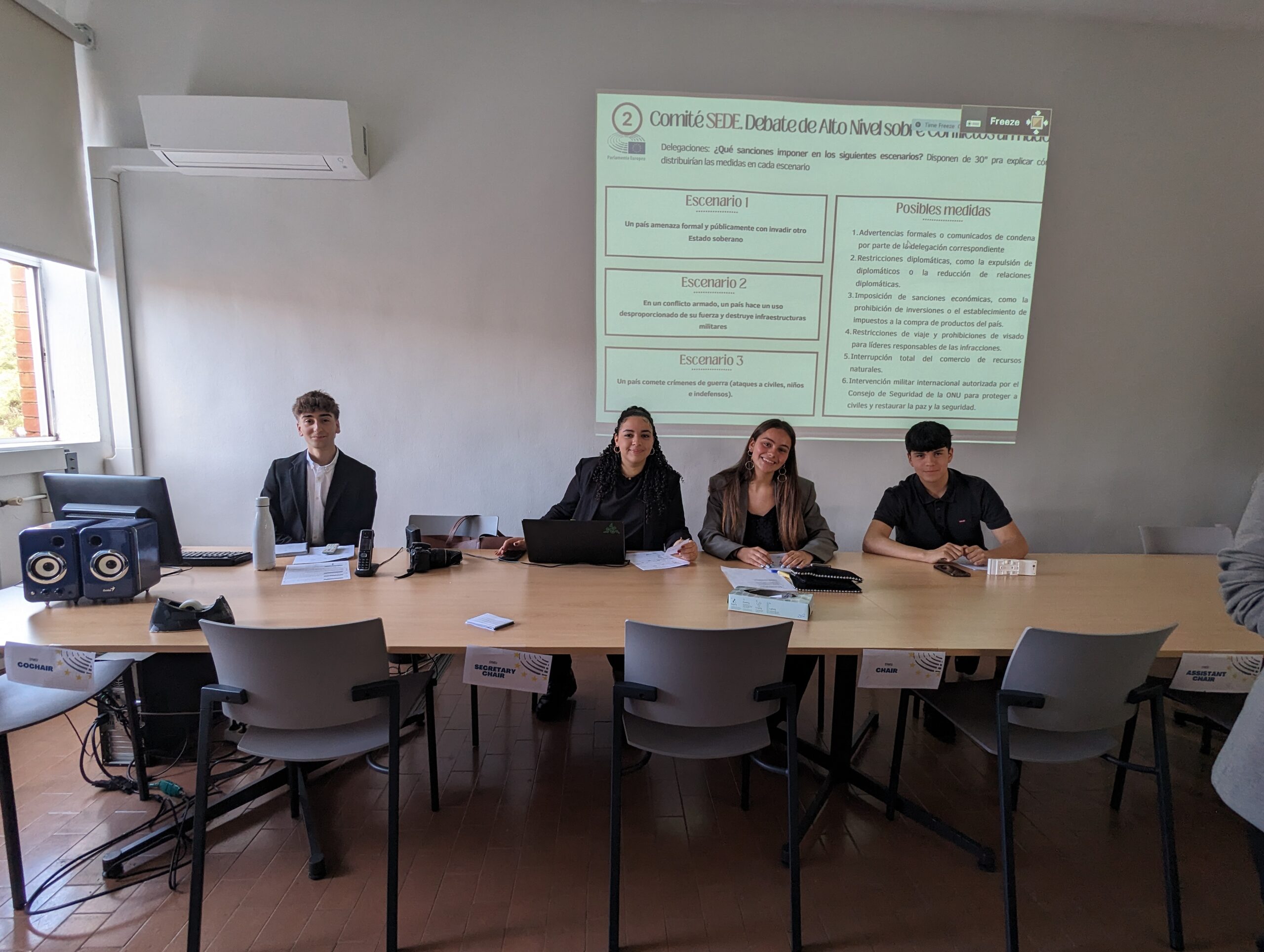 Nuestra más sincera enhorabuena a las delegaciones, en primera instancia, por representar con el rigor que merece a los países que hubieron de representar. Enhorabuena también al Departamento de Lengua y Literatura y al de Filosofía por su trabajo en la coordinación. Y enhorabuena al alumnado de Oratoria por su titánica dedicación a la organización del evento.