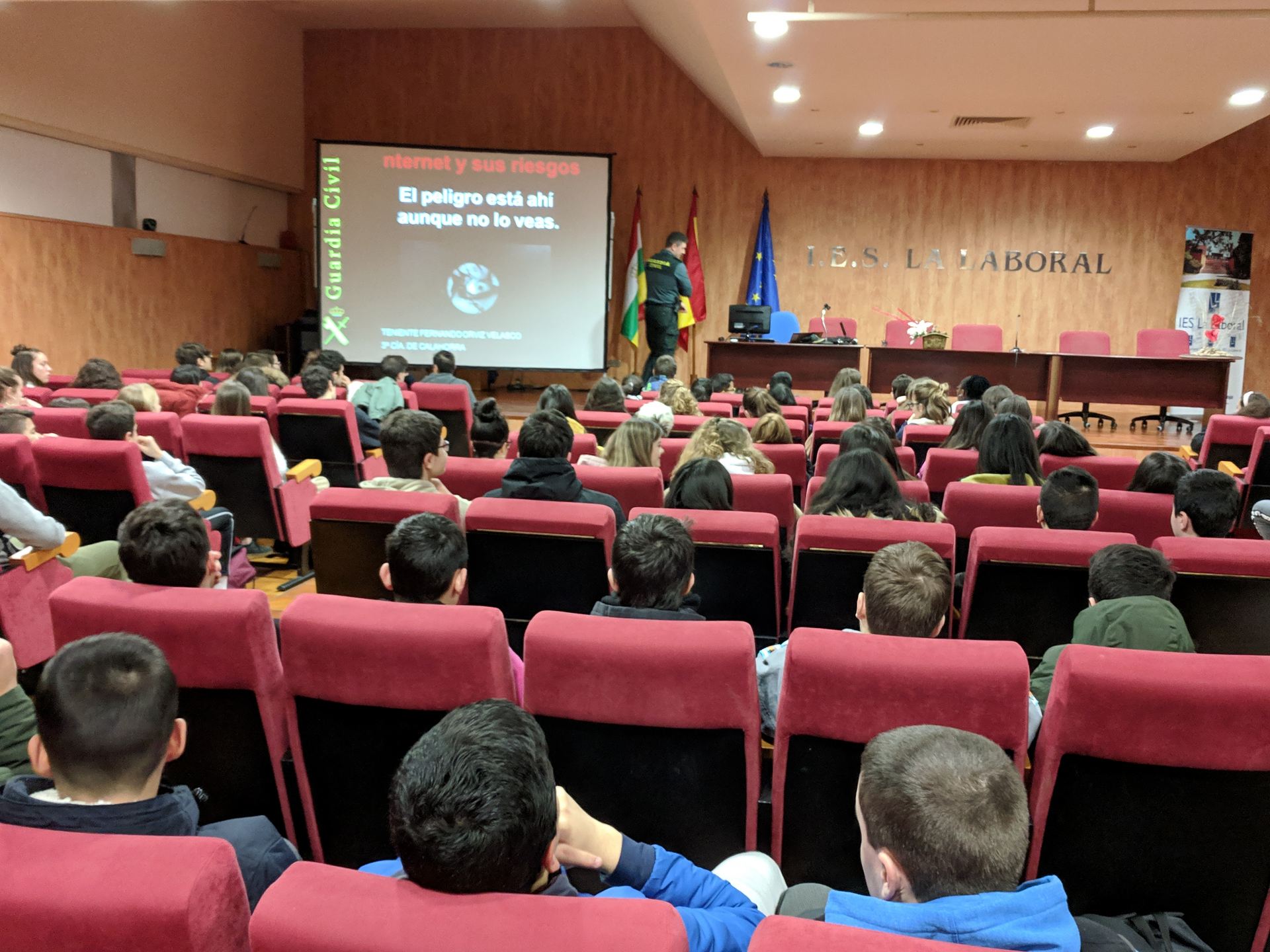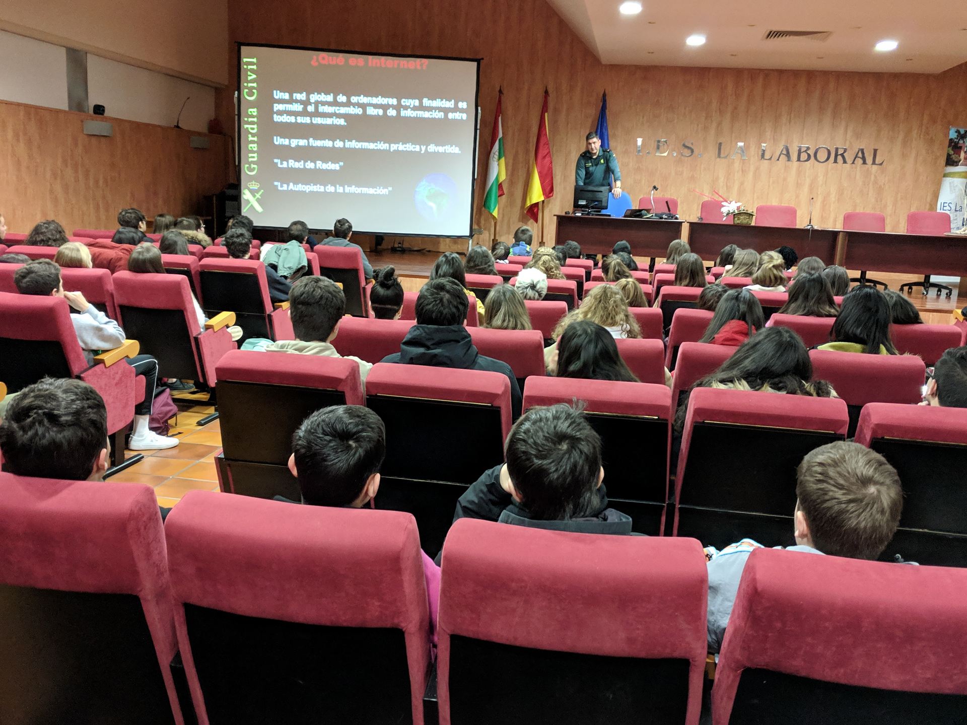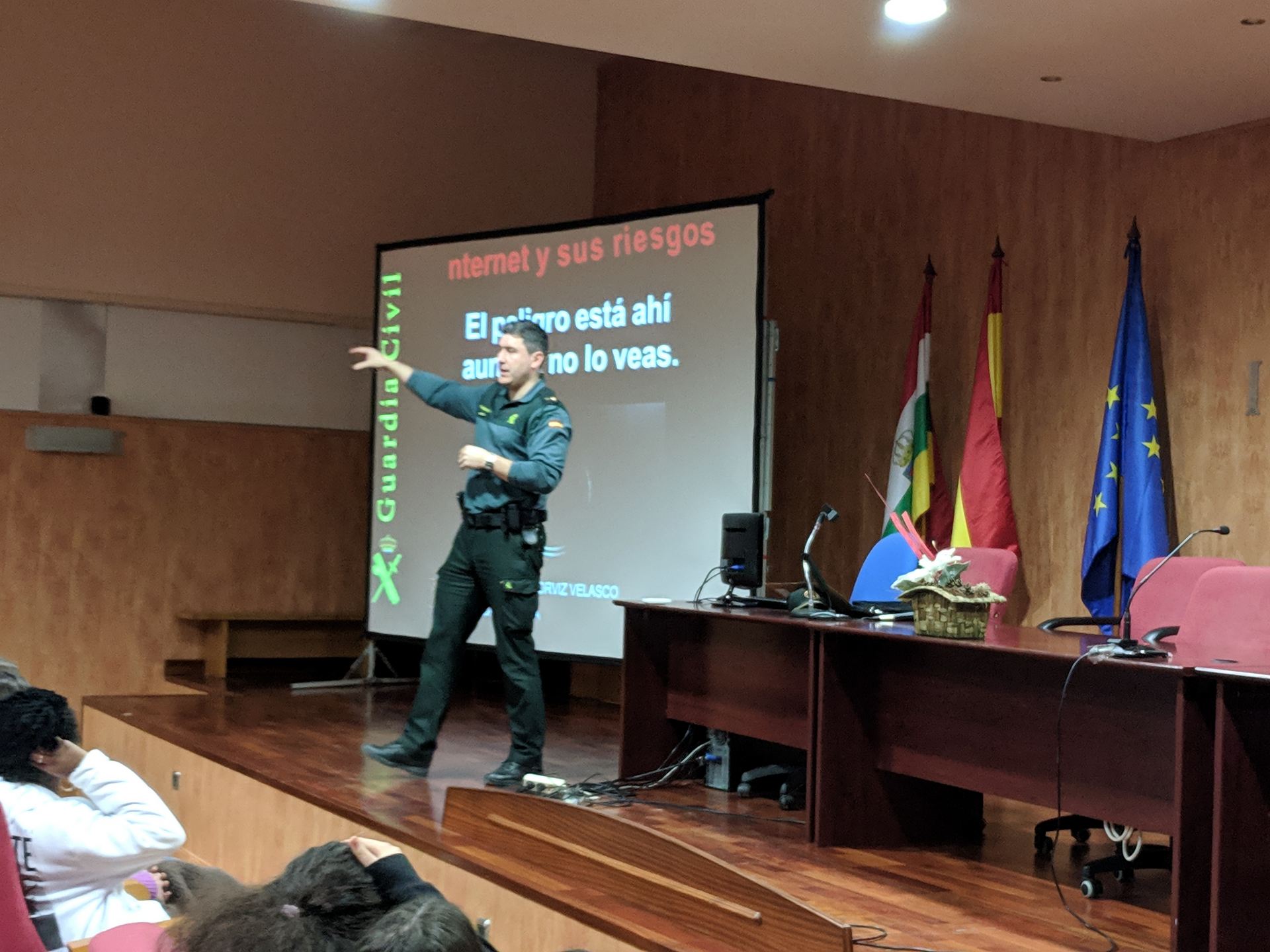 Esta mañana los alumnos de 3º ESO han asistido a una charla sobre Riesgos de Internet impartida por la Guardia Civil, en la que se han analizado los usos de Internet, las redes sociales más comunes entre los adolescentes, así como los peligros que entraña una utilización negligente de las mismas. Agradecemos a la Guardia Civil su implicación en la labor de concienciación sobre los riesgos que comportan ciertos hábitos en la red.