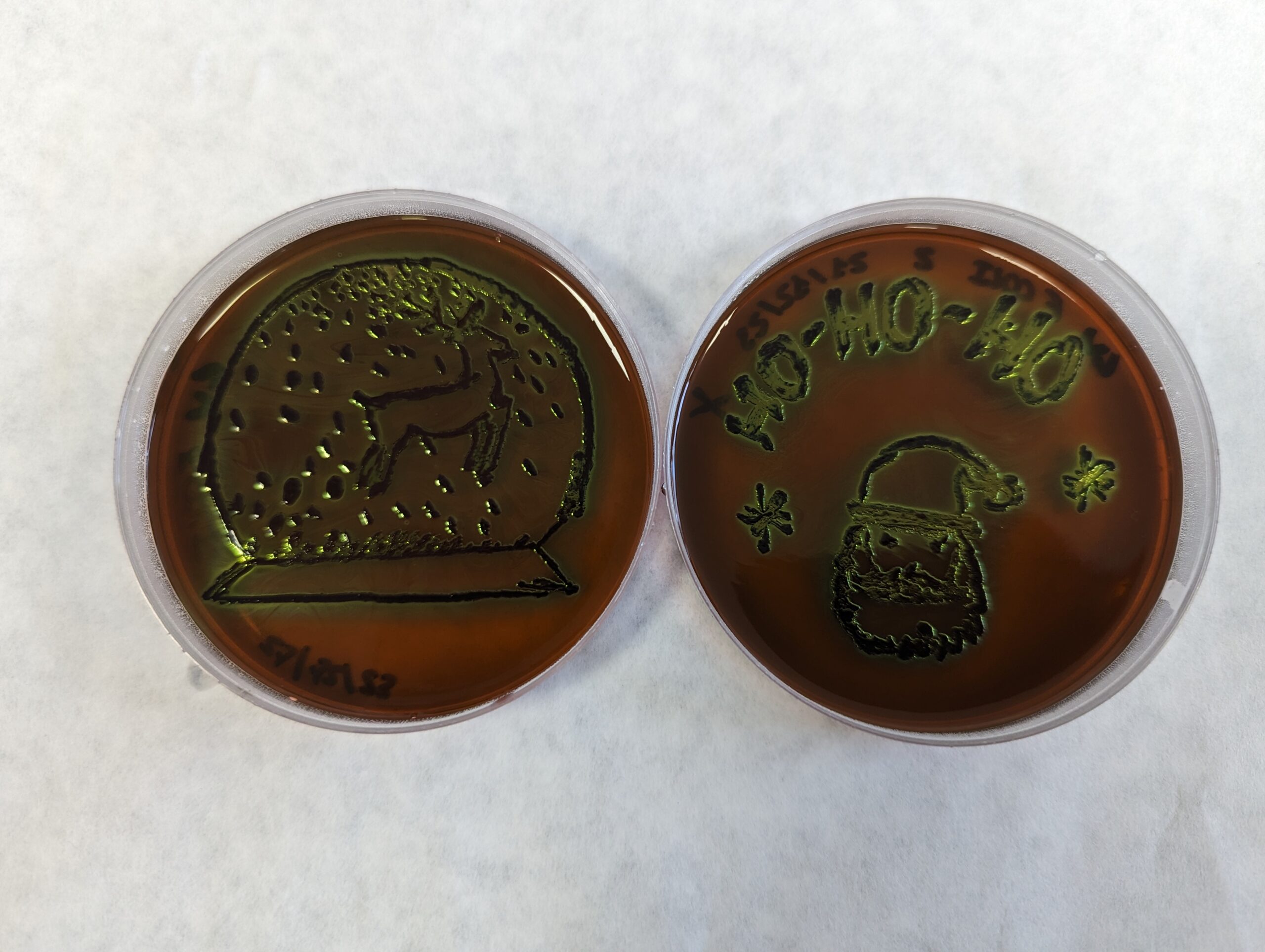Los alumnos de 2º curso del Ciclo de Grado Medio de Operaciones de Laboratorio (MLAB) han participado en el Concurso de motivos navideños elaborados con bacterias. Su profesora Nerea Porres ha organizado la actividad. Los ganadores han sido Lara Álvarez Abad -Primer Premio- y Diego Jover Redondo -Segundo Premio-. ¡Enhorabuena a los dos!