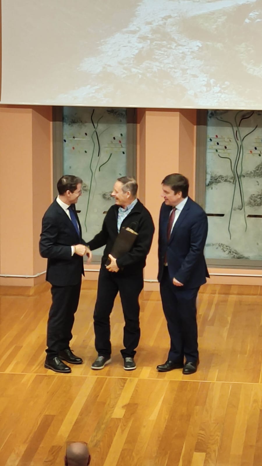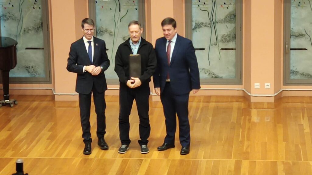 En este homenaje han estado acompañados por Roberto Castellanos, Director del IES La Laboral, y Nacho Herreros, Jefe de Estudios del centro.