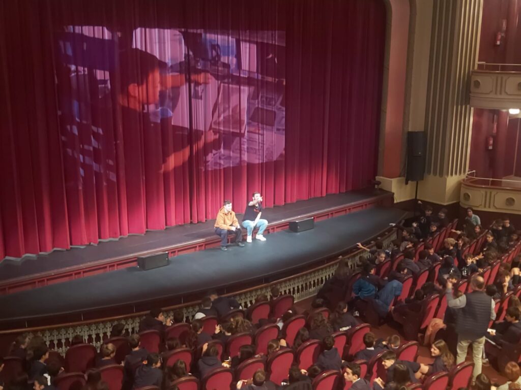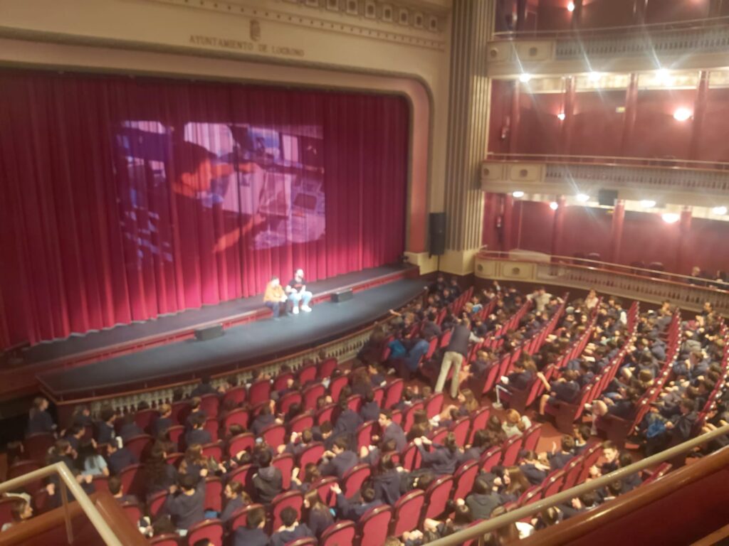 Esta mañana los estudiantes de 4° ESO han asistido a la representación de «Praga, 1941», de la Compañía de Teatro La Joven. El actor Fernando Sainz de la Maza ha interpretado muy bien a dos personajes adolescentes, Daniel, que vive en el año 2003 en Praga, y Petr Ginz, un niño muy talentoso que sufre el horror nazi en la misma ciudad, unas décadas antes, concretamente en 1941.