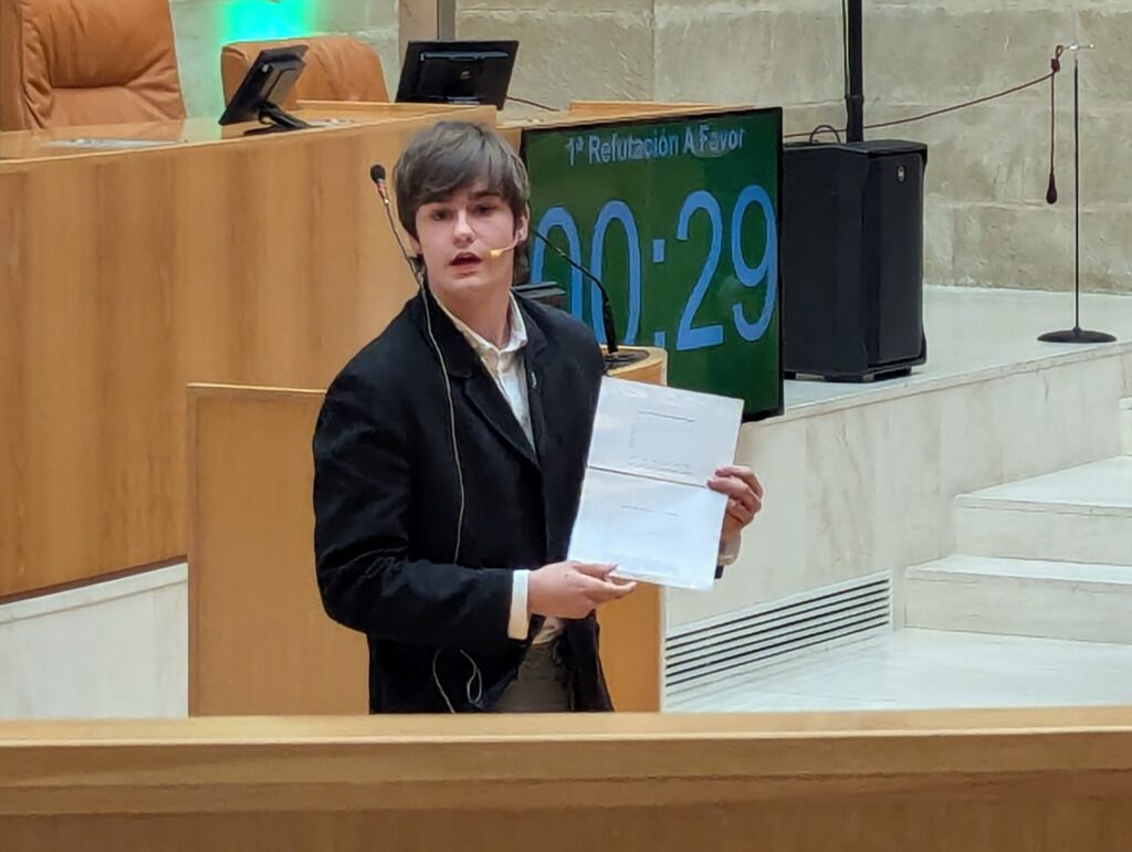 Hoy nuestro equipo, integrado por Ariel Alves, Enrique Lasheras, Bassma Moujniba, Julia Pelayo y José Rubiano, se ha enfrentado al IES Marco Fabio Quintiliano en semifinales y al CPC Sagrado Corazón en la final. En ambos debates les ha tocado defender la postura a favor, cosa que han hecho con brillantez.