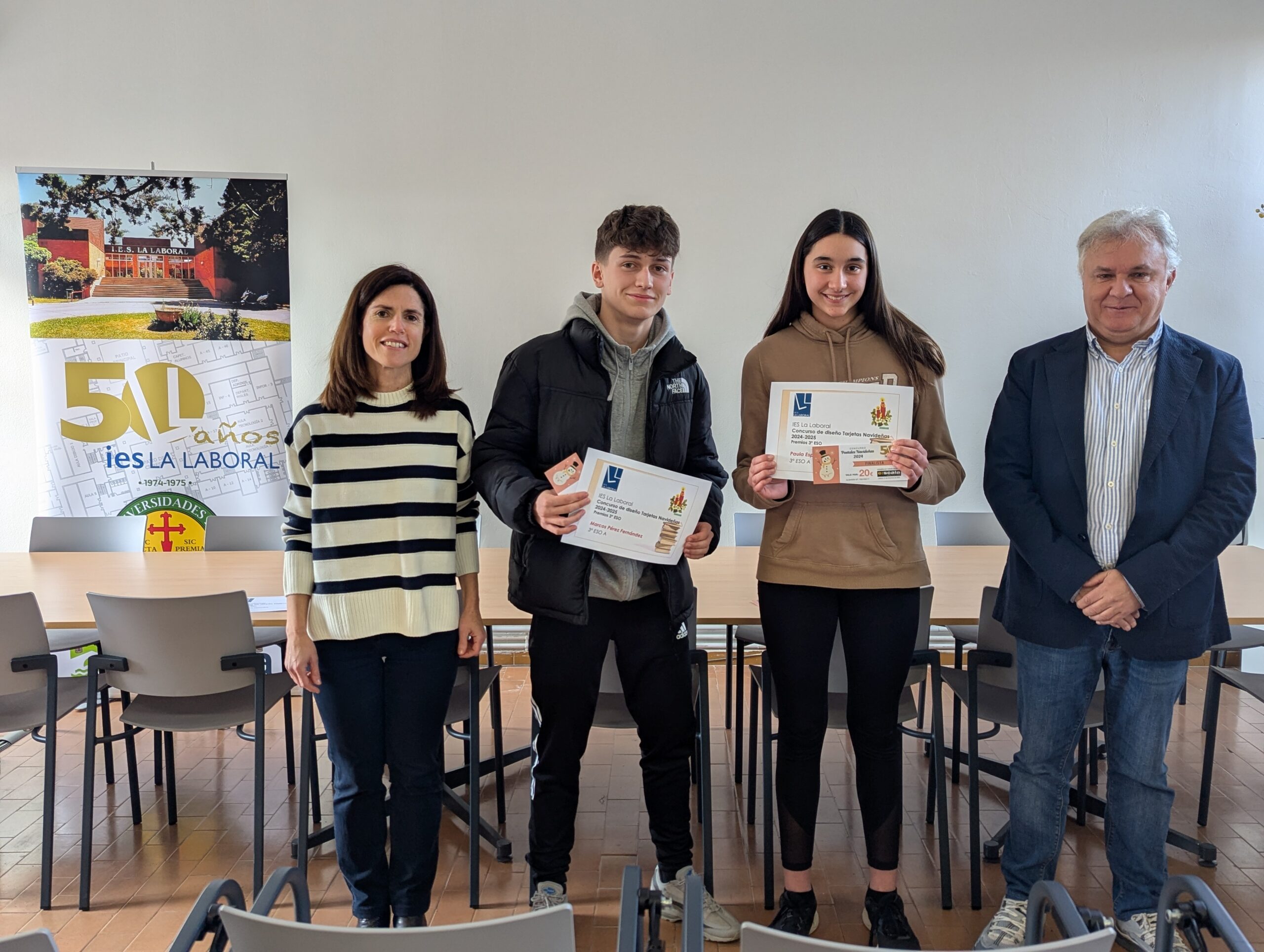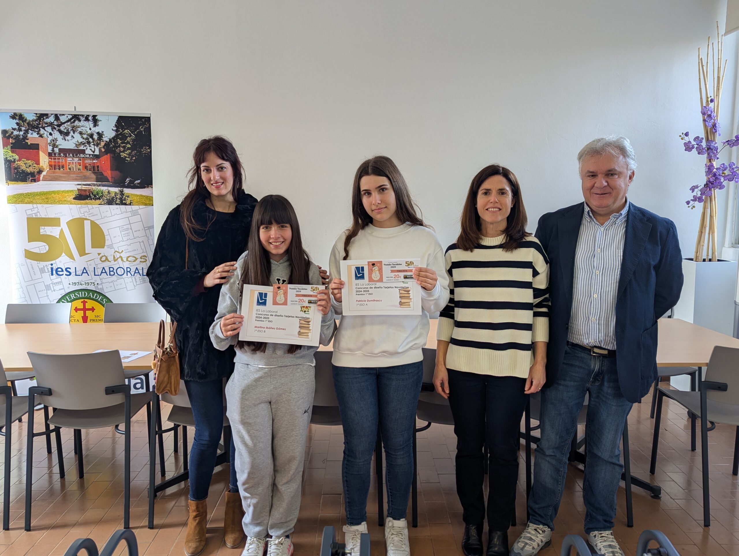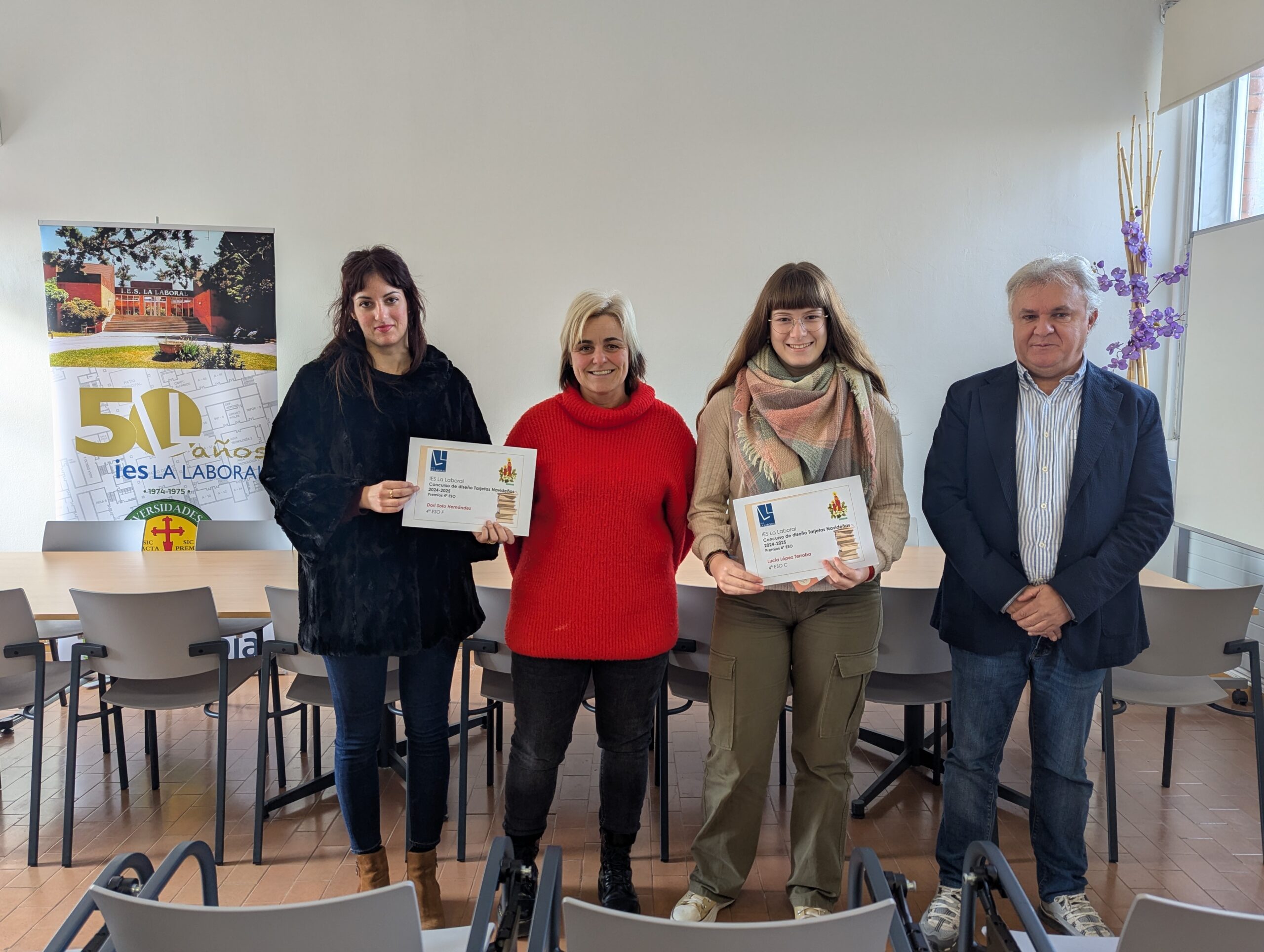 Esta mañana el Director del centro, Roberto Castellanos, junto con la Jefa del Departamento de Artes Plásticas, Eva López, y el resto de profesores del Departamento, han entregado los diplomas y cheques regalo a los alumnos premiados en el Concurso de Tarjetas Navideñas 2024.