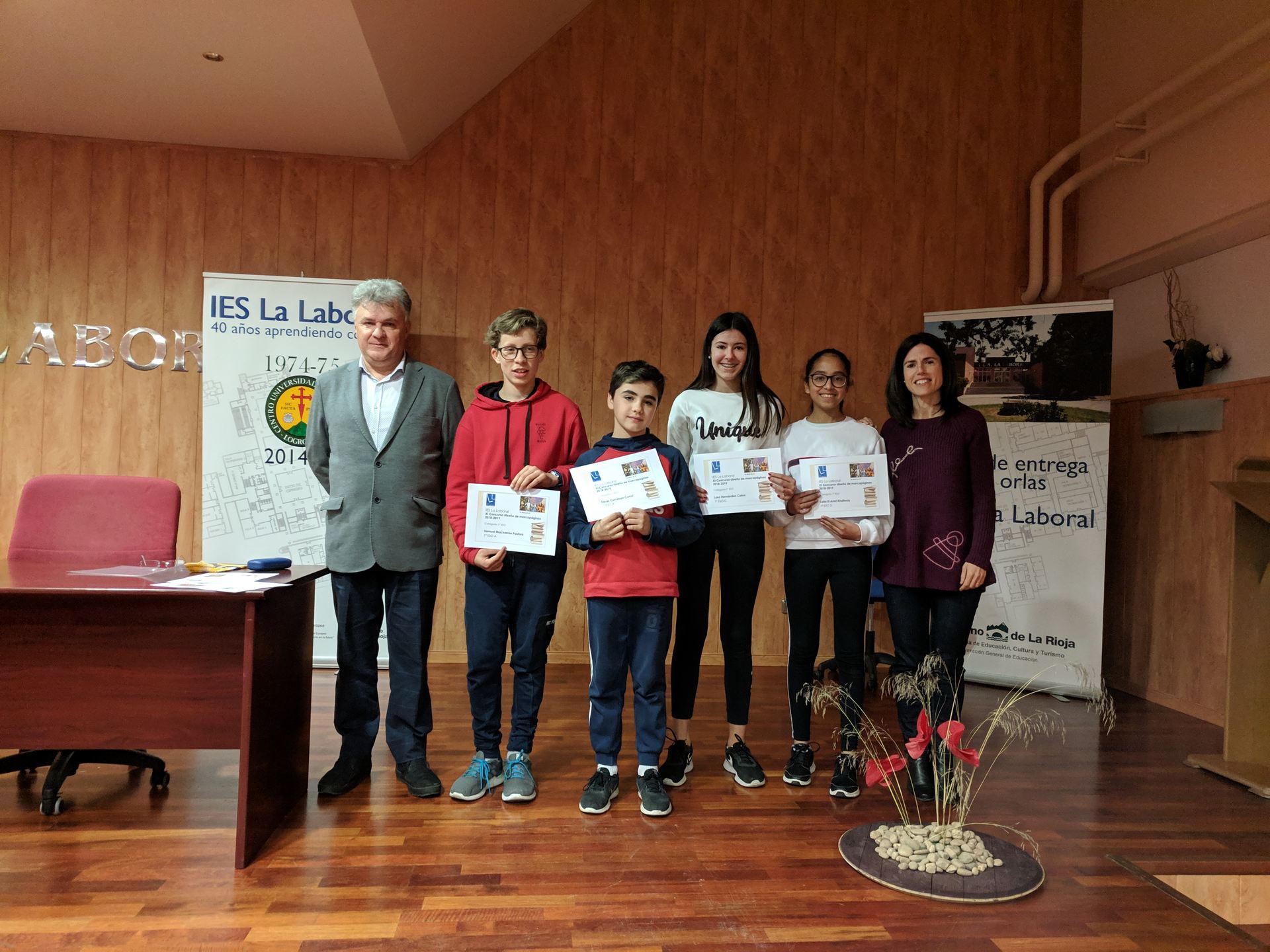 Esta mañana el Director del centro, Roberto Castellanos, y la jefa del Departamento de Artes Plásticas, Eva López, han entregado los premios a los ganadores del Concurso de Marcapáginas 2019.