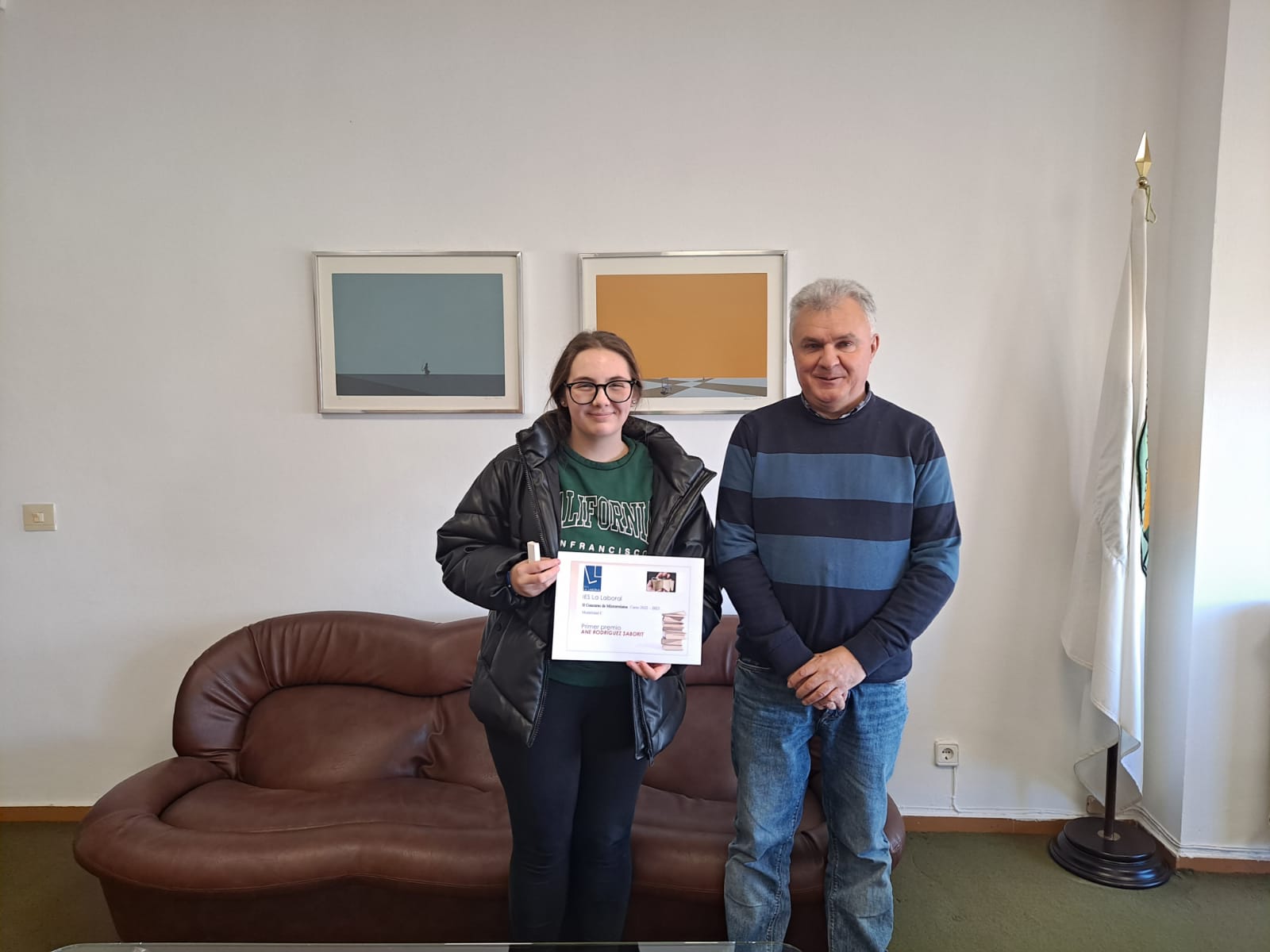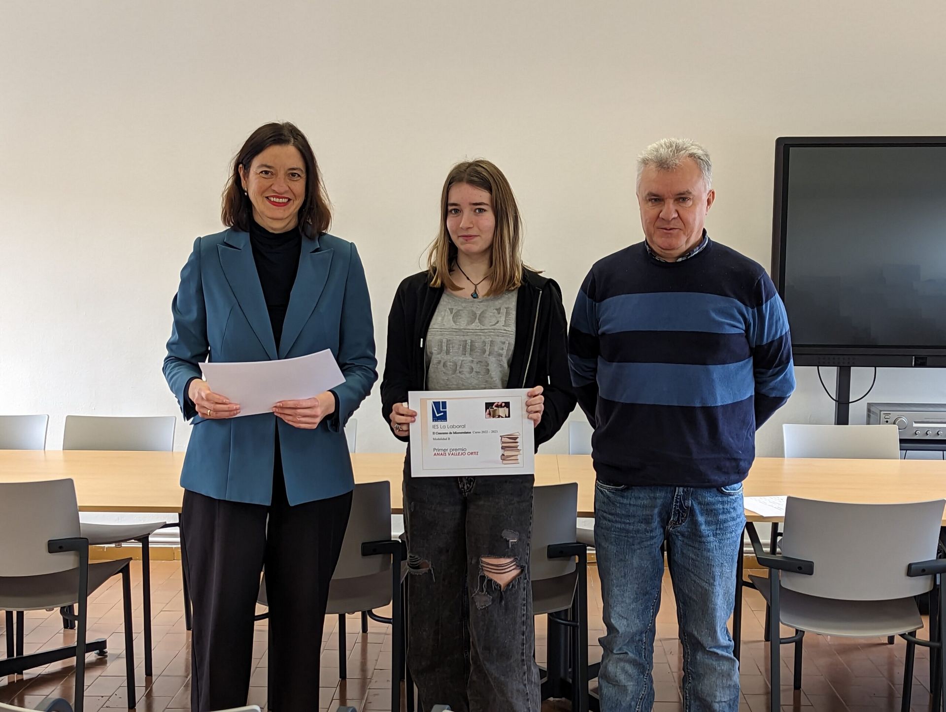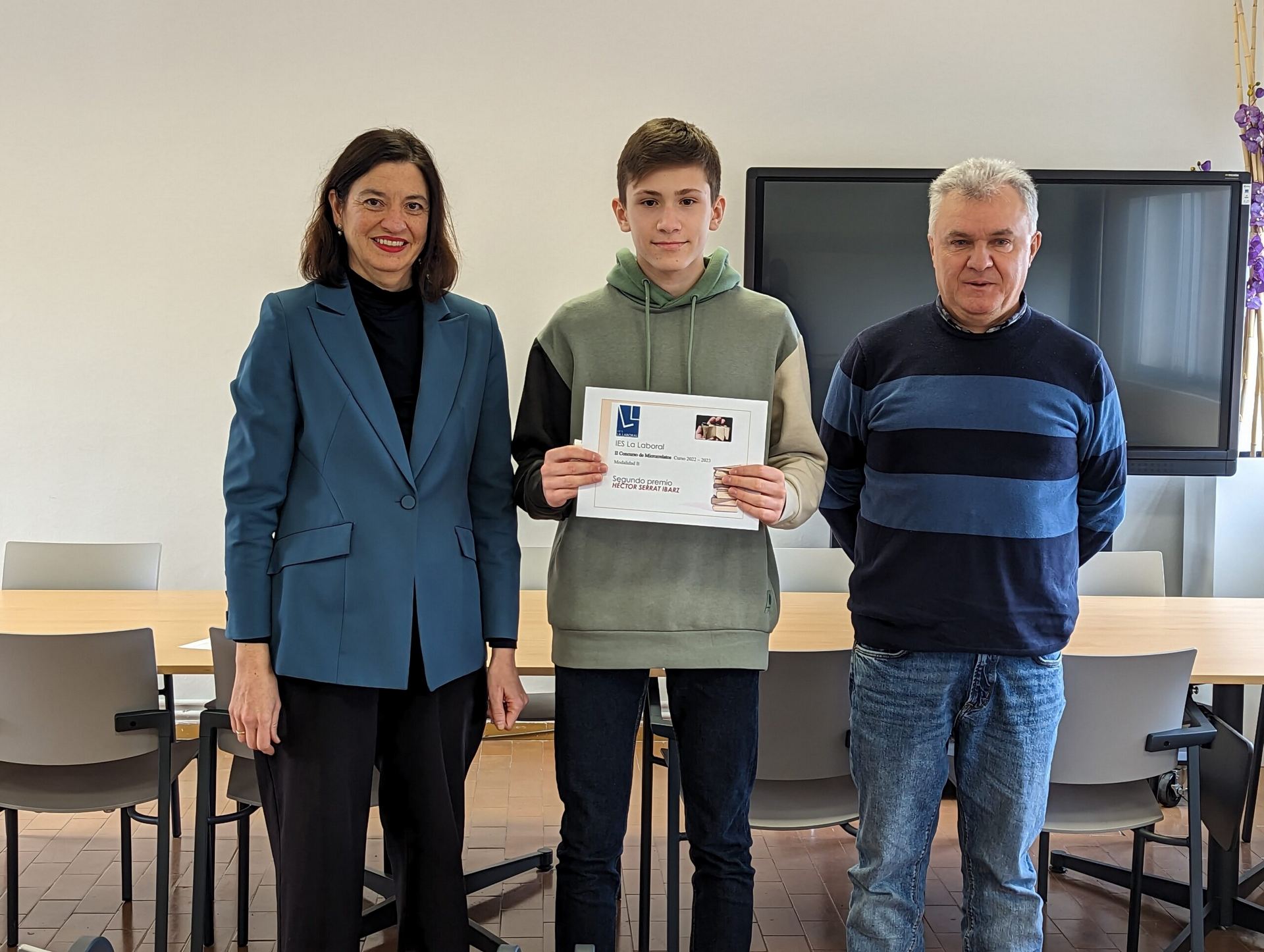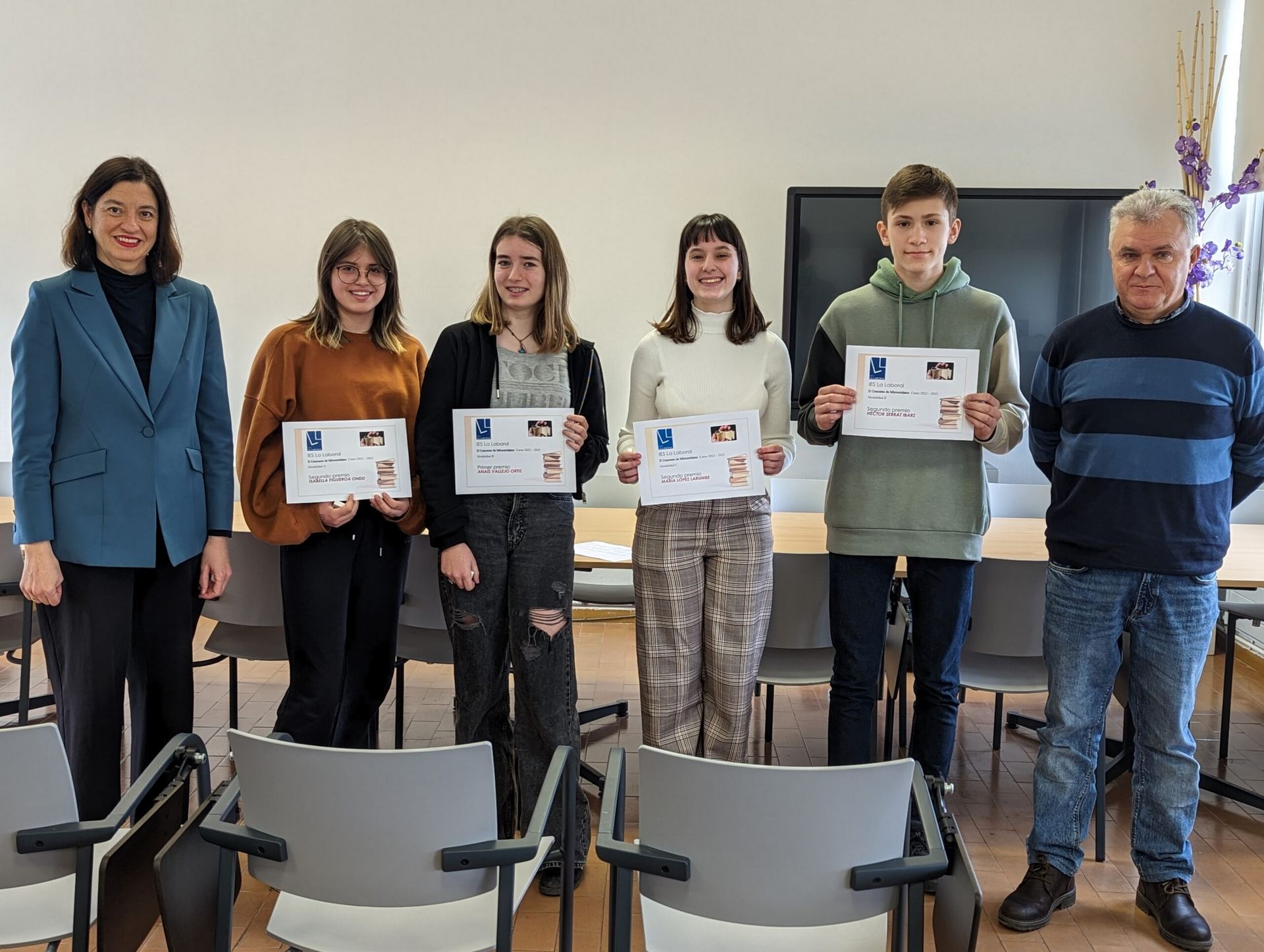 El Director del centro, Roberto Castellanos, y la Jefa del Departamento de Lengua y Literatura, Ana Moraga, han entregado los premios y diplomas acreditativos a los ganadores del II Concurso de Microrrelatos, organizado por el Departamento de Lengua y Literatura.