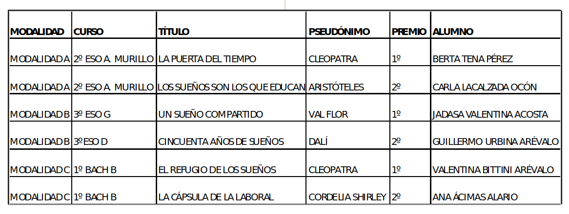 Los alumnos premiados han recibido un diploma acreditativo y un cheque en material escolar, que les han entregado Roberto Castellanos, Director del centro, y Ana Moraga, Jefa del Departamento de Lengua y Literatura.