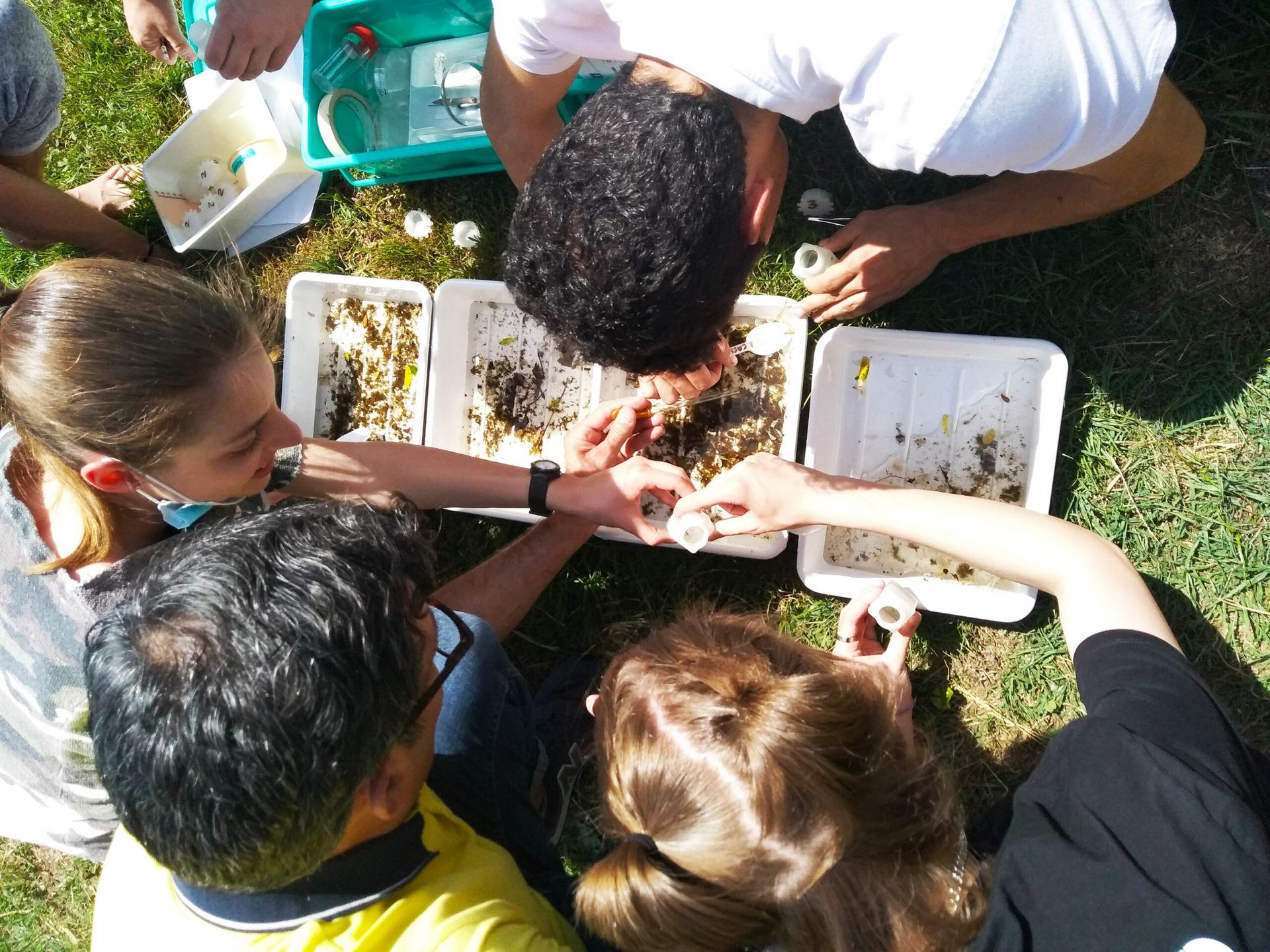 La siguiente colección fotográfica da fe del trabajo colaborativo durante una toma de muestras en campo abierto con el alumnado italiano.
