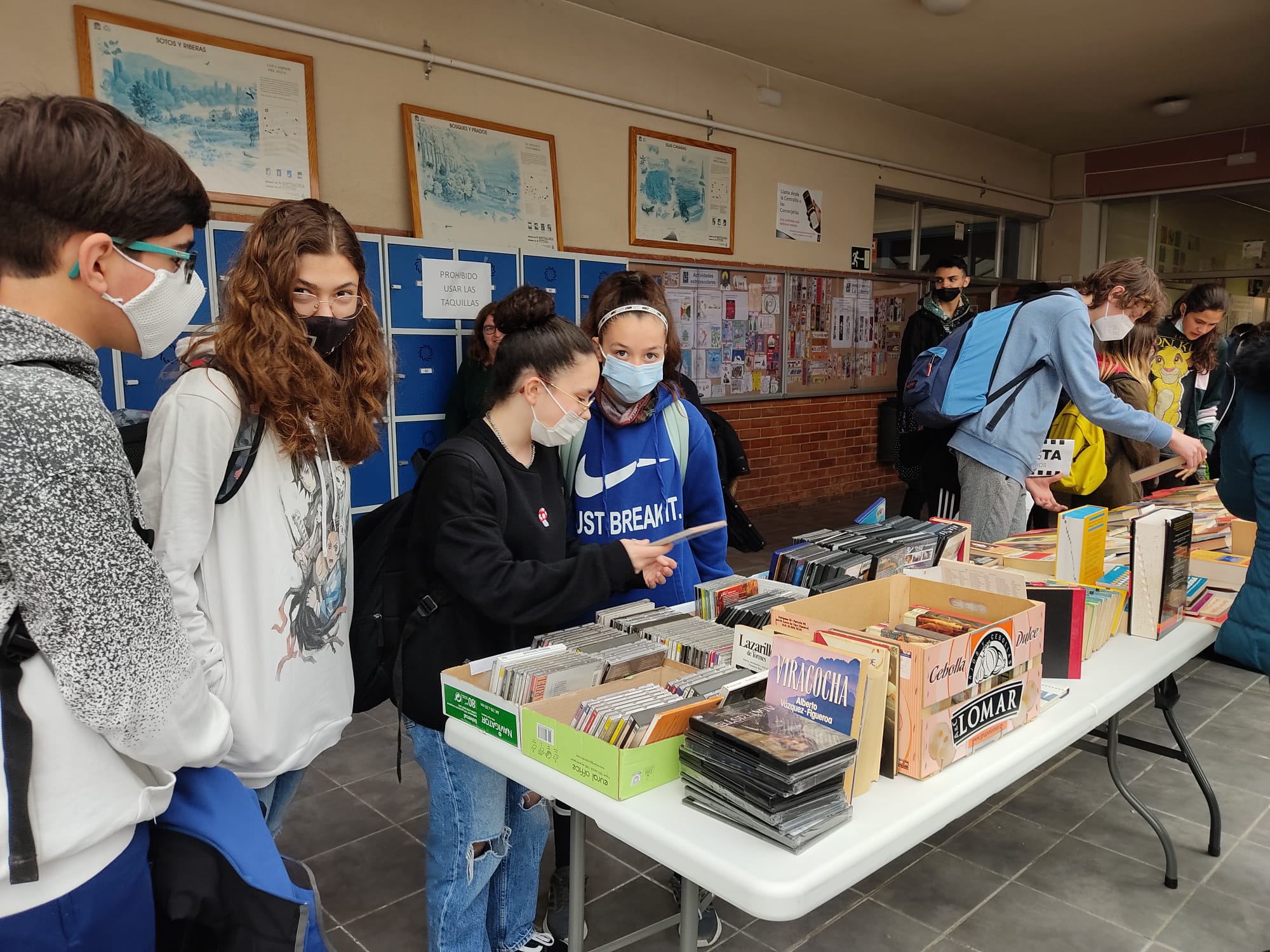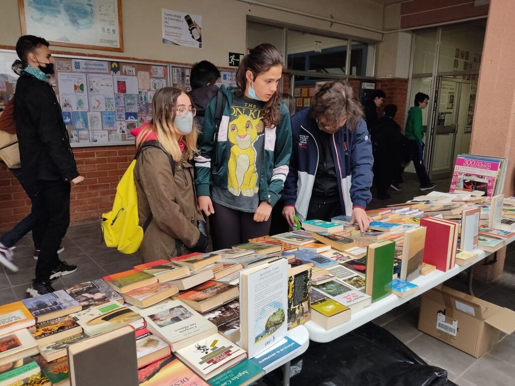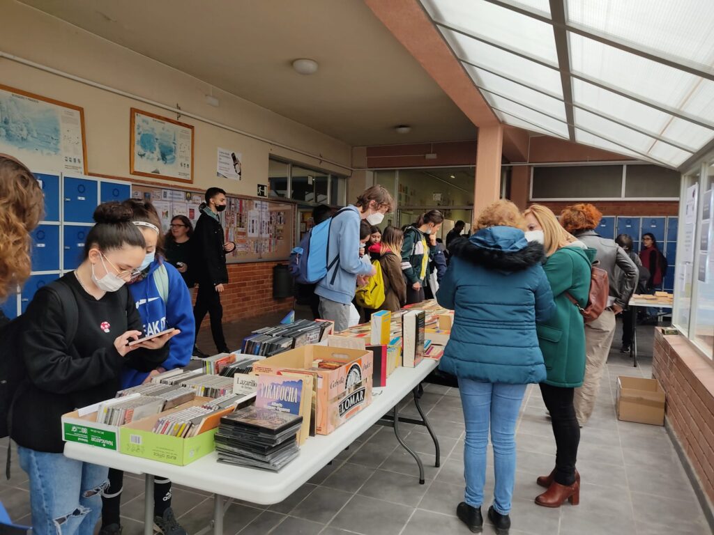 Como todos los años, del 22 al 29 de abril se está celebrando en el centro la Feria del Libro Usado, que también permaneció abierta el domingo 24 de abril con ocasión de la Jornada de Puertas Abiertas. Tanto alumnos como profesores están donando y comprando libros, enciclopedias y colecciones con los que completar su biblioteca personal y pasar estupendos ratos de lectura. También en esta feria se intercambian álbumes tanto en vinilo como en CD.