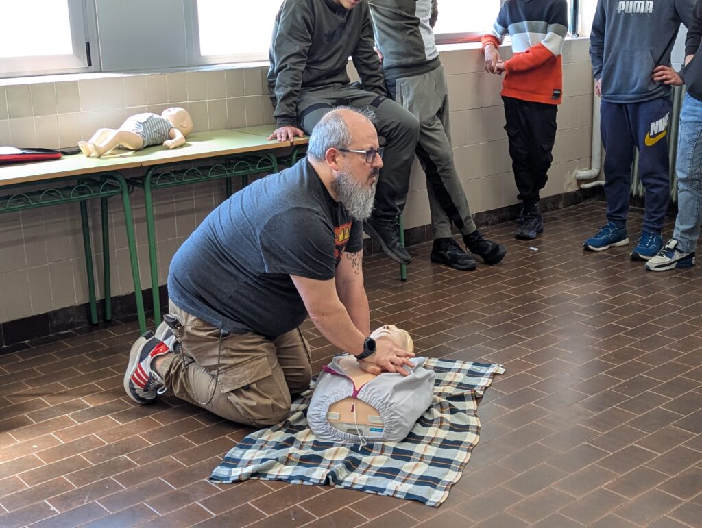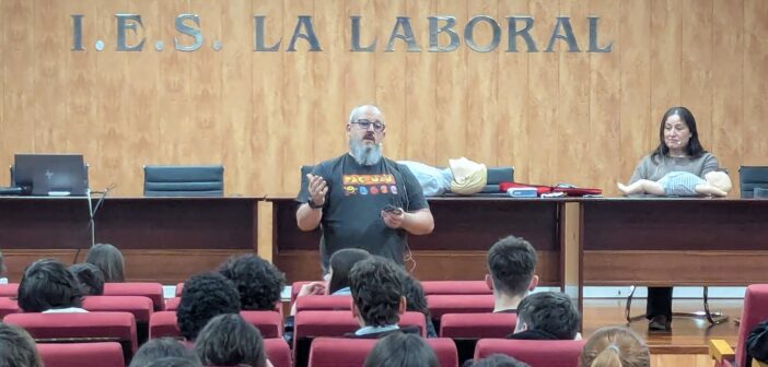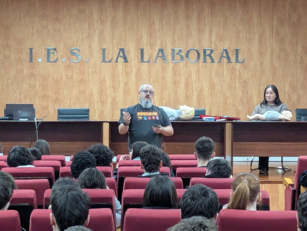 Los enfermeros y padres de alumnas de nuestro centro, Enrique Nalda y Raquel Dávila, están impartiendo unas sesiones de formación sobre Técnicas de primeros auxilios a los alumnos de 4º de ESO. La formación consta de una sesión teórica inicial, que se celebró el lunes 7 de abril, y de una sesión posterior en grupos reducidos en la que los alumnos ponen en práctica las maniobras de reanimación aprendidas. Las sesiones ocuparán las clases de tutoría durante esta semana y la posterior a las vacaciones de Semana Santa.