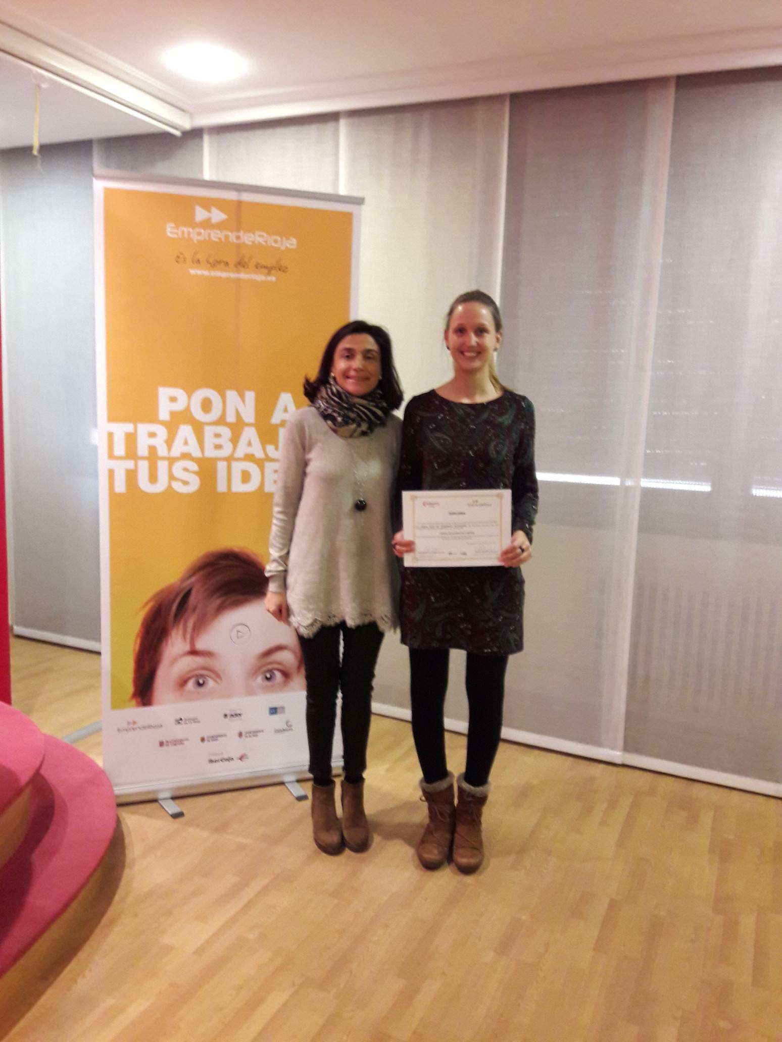 La acompañó a recoger el premio, su profesora del módulo de Empresa e Iniciativa Emprendedora, Susana Pérez Vega.