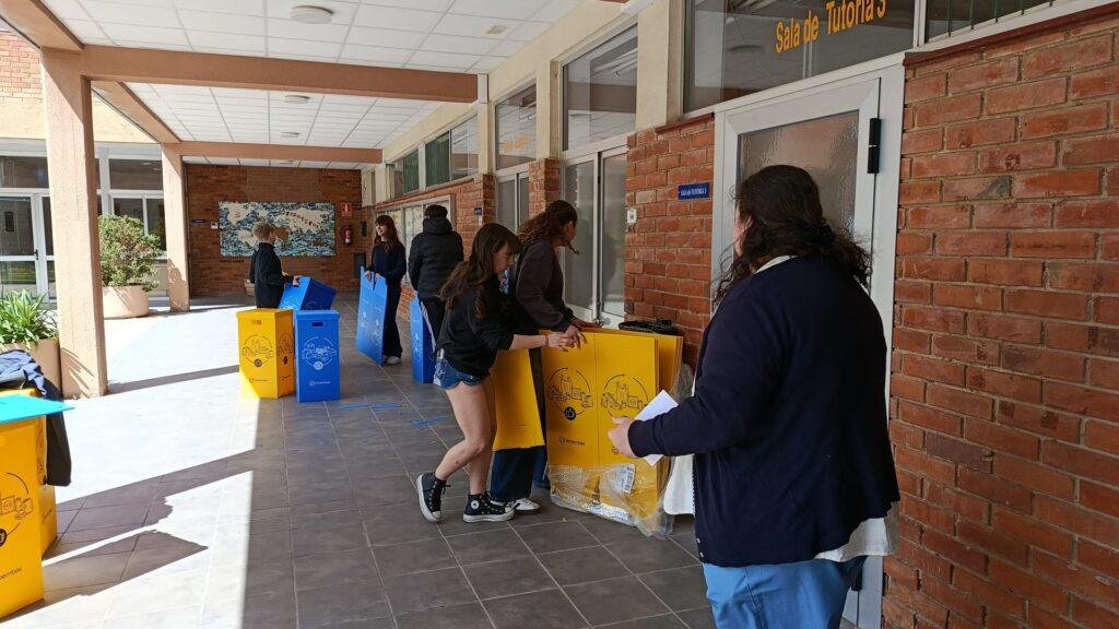 Acciones directas en el centro, como la instalación de puntos de recogida selectiva (pilas, plásticos, tapones, ropa), fomentando hábitos sostenibles en el día a día.