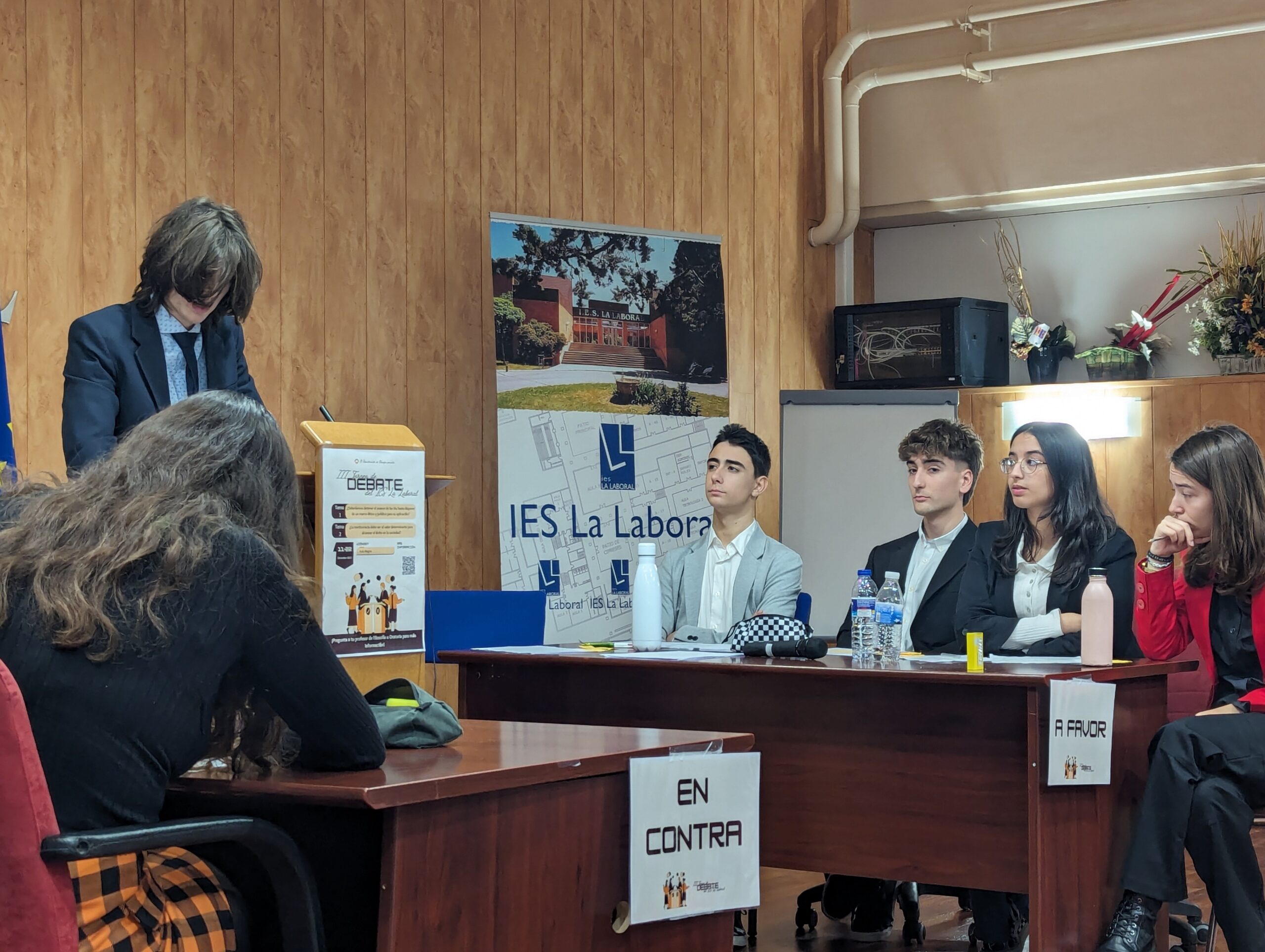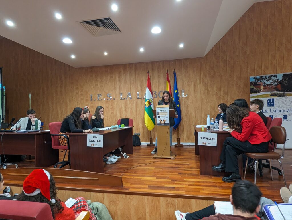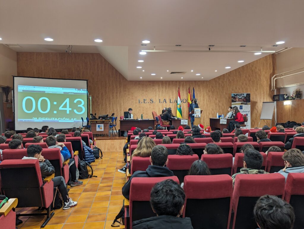 Desde el lunes 11 de diciembre al 22 de este mismo mes, tuvo lugar el «III Torneo de Debate IES La Laboral». Nuestros alumnos de Ética y Filosofía, de 4º de ESO, y de Oratoria y de Filosofía de 1º de Bachillerato, intervinieron en sendos enfrentamientos clasificatorios ante un Aula Magna llena hasta la bandera.