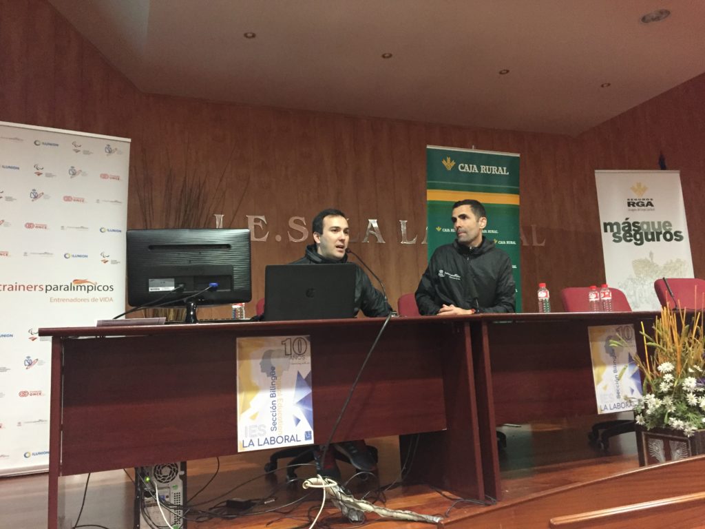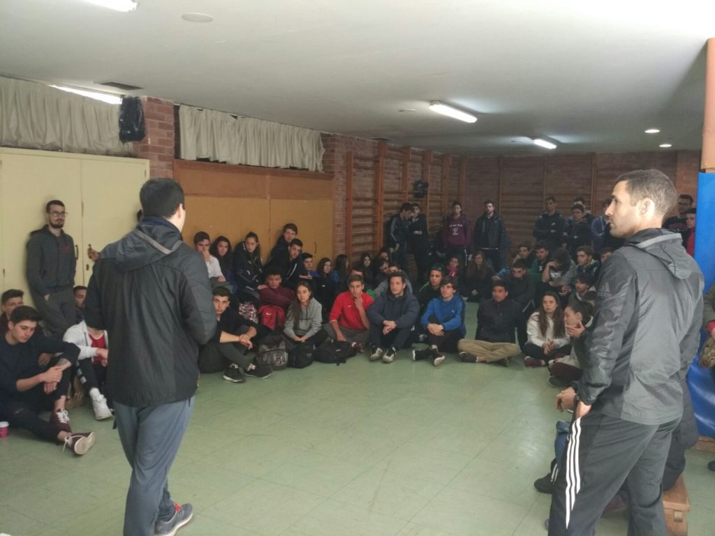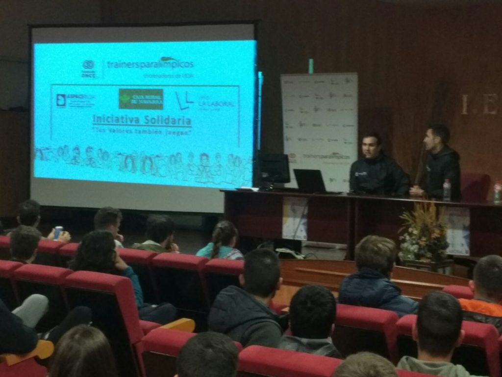 Ayer más de un centenar de alumnos de nuestro centro pudo compartir con Aspace-Rioja la Jornada de Deporte Inclusivo “Tus valores también cuentan”. Los alumnos del Grado de Actividades Físico Deportivas del instituto y los compañeros de Aspace-Rioja jugaron a vóley sentado, fútbol-7, goalball y practicaron atletismo. Tuvieron la suerte de poder contar con la presencia de Enrique Floriano, medallista paralímpico en Sidney, Atenas, Pekín y Londres, y de Javier Soto, campeón del mundo de atletismo de sordos en 1500 metros.