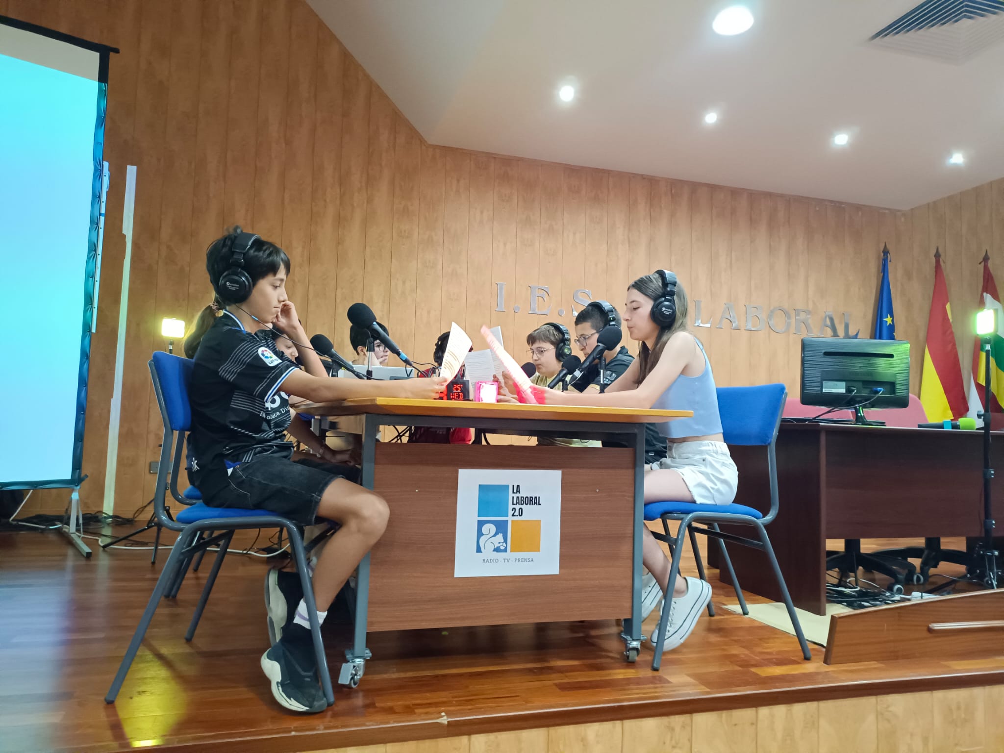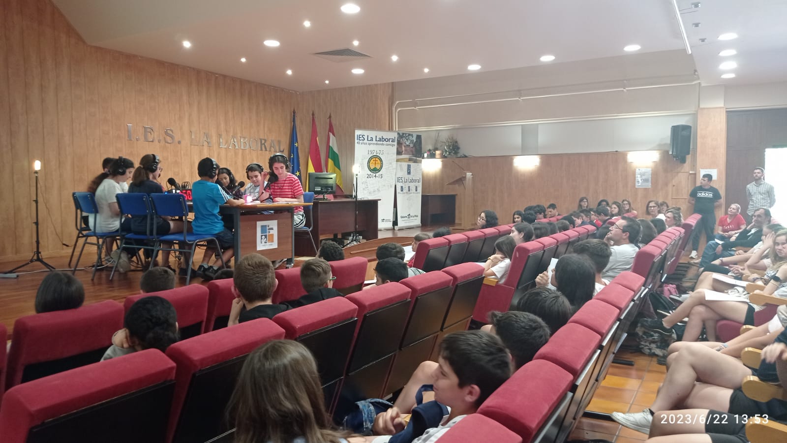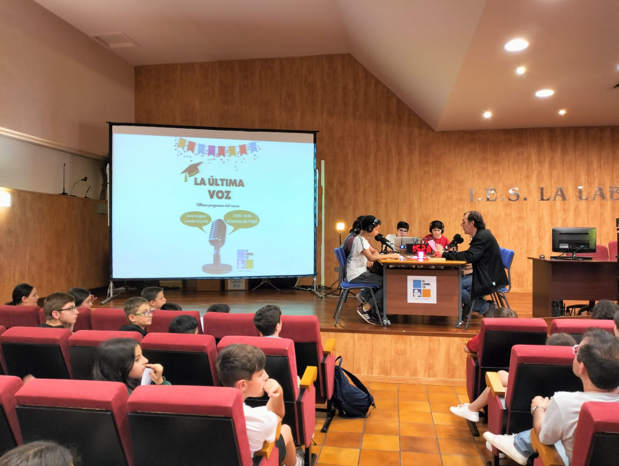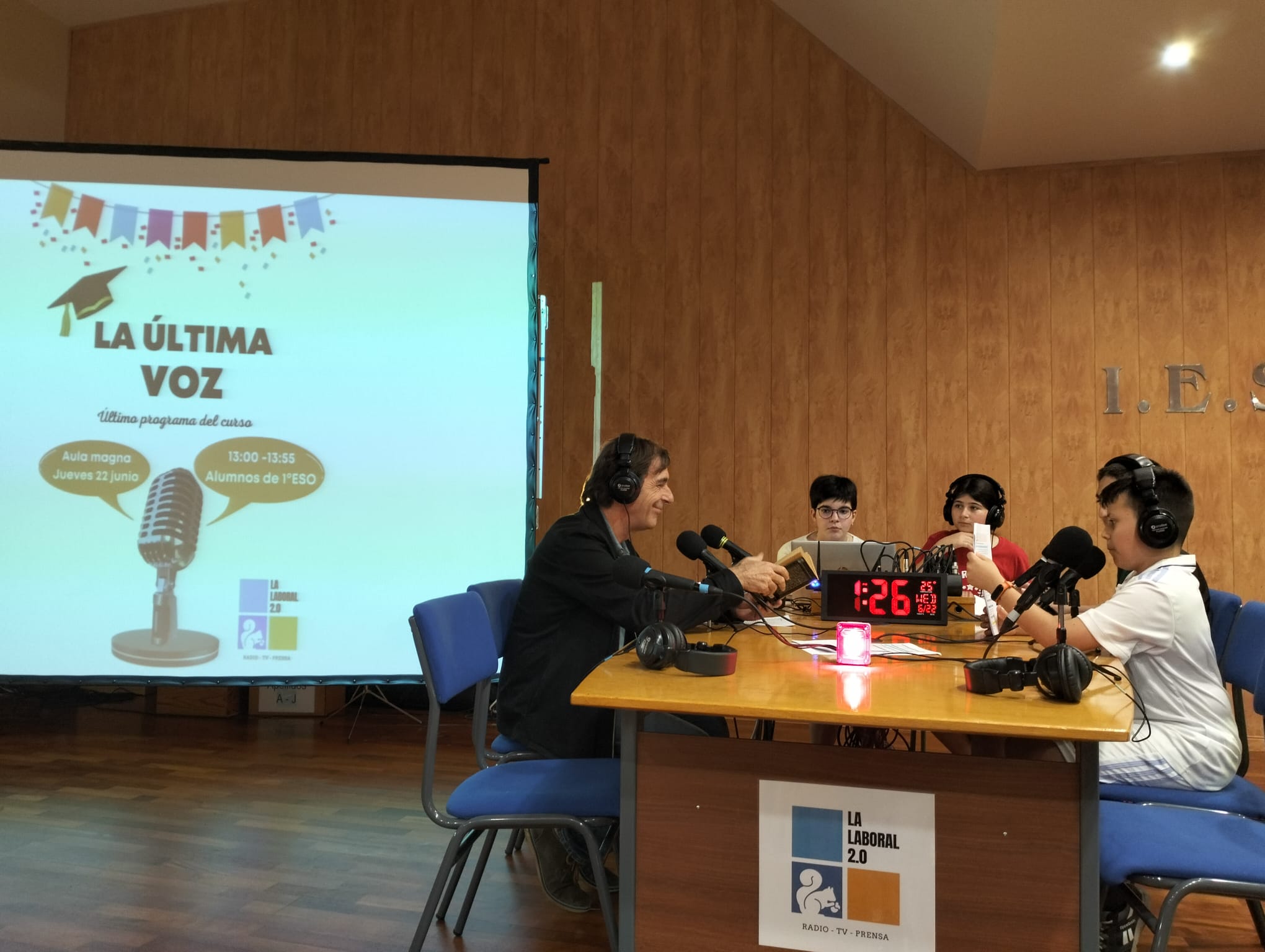 En él, han intervenido varios alumnos de 1ºESO como Inés, Fabio, Estela, Gonzalo, Teresa, Daniel, Ángela, Silvio, Candela, Larisa, Imanol, Fernando, Amaia, Nasir, Éric, Iker, Santiago, Laura, Mari José, Iván, Álex, Michelle, Sabrina, Víctor, Rayana, Aitana, Adrién, etc. Además, en el programa han participado Anne y Ainhoa, alumnas de 4ºESO y ganadoras de Divulgaciencia 2022; Juan Manuel González Zapatero, profesor del Dpto. de Lengua Castellana y Literatura, y los alumnos ganadores del Torneo de Debate Universitario. Como colofón, hemos contado con la actuación estelar de Aiden Álvaro, alumno de 3º ESO E, que nos ha deleitado con su maravillosa actuación musical.