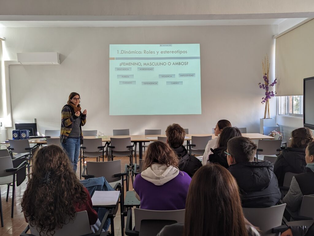 Los alumnos de 1º de Bachillerato están asistiendo estos días a un taller de sensibilización y detección de la violencia de género y otras formas de violencia hacia las mujeres. Este taller, que consta de dos sesiones, pretende hacer reflexionar mediante dinámicas participativas sobre los roles y estereotipos que lastran nuestra convivencia diaria y que constituyen el germen de diversas formas de violencia hacia las mujeres.