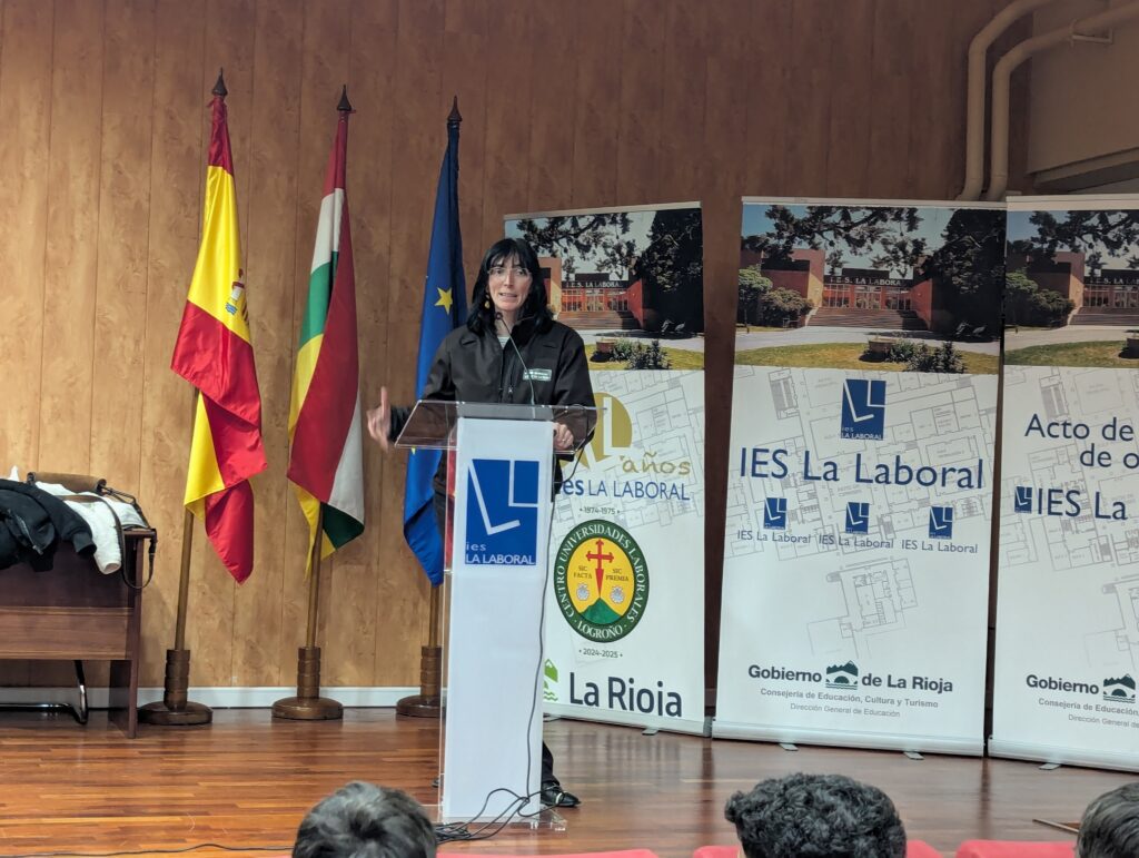 Por otro lado, el paleontólogo Adrián Blázquez y la restauradora Alba Marco han dirigido una charla a los alumnos de 4º de la ESO que cursan la asignatura de Biología y Geología en el Aula Magna. En la misma han hablado de los principales yacimientos fósiles de dinosaurios de La Rioja. Ha sido especialmente interesante la parte en la que nos han explicado las técnicas convencionales y de última generación para estudiar a estos fantásticos seres.