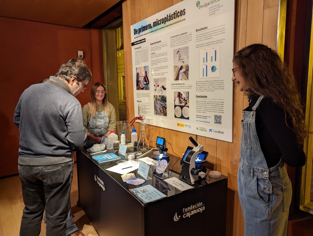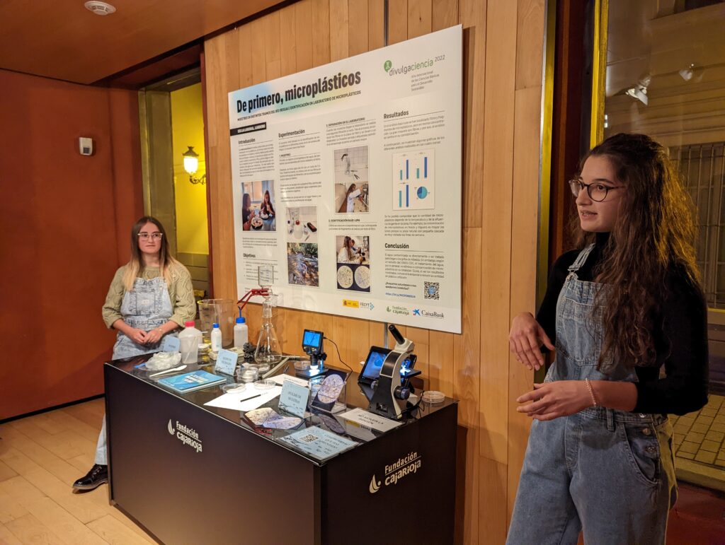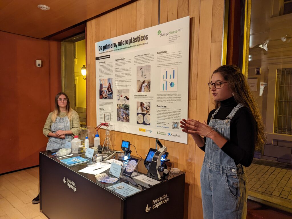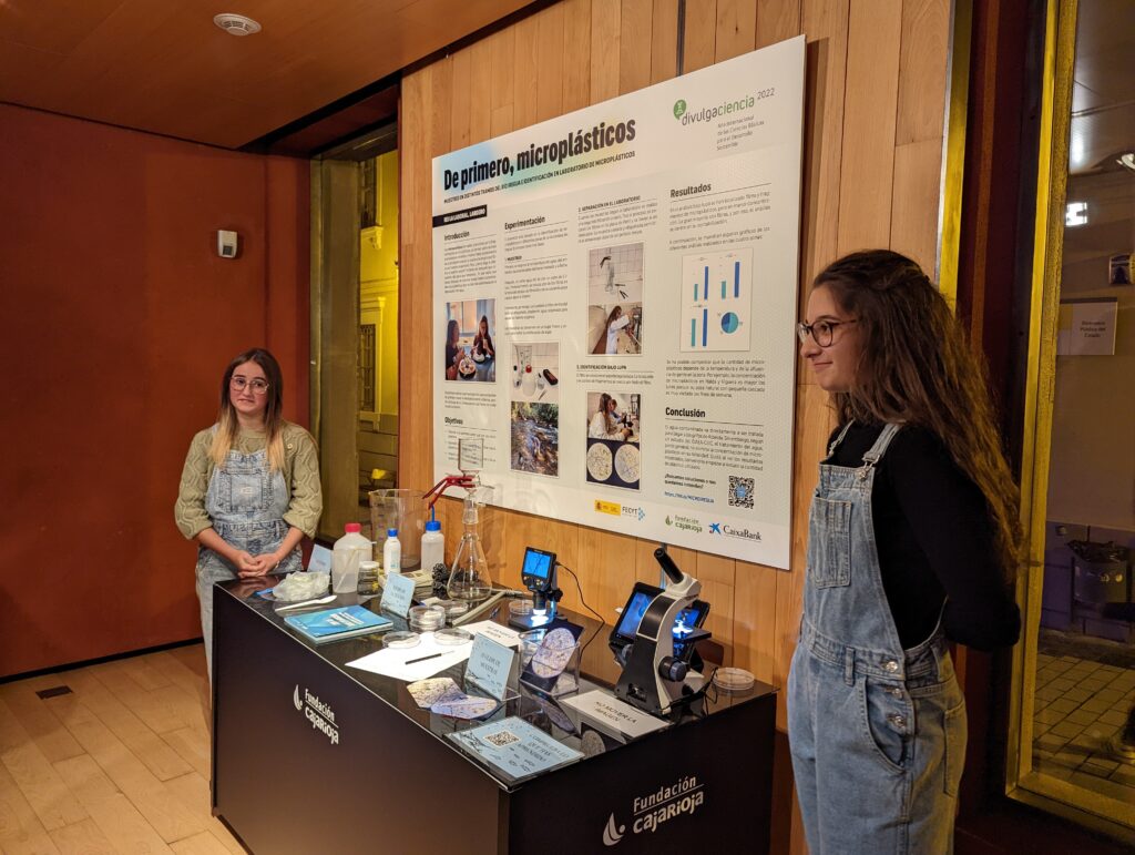 Anne Fiérrez y Ainhoa Martín, de 4º de ESO, nos alertaron sobre el peligro que supone para nuestra salud la presencia de microplásticos en nuestro organismo. A través del muestreo realizado en las aguas fluviales de Albelda, Nalda y Viguera pudieron determinar que la concentración de microplásticos que luego pasan a nuestro organismo es alta. Aquí tenéis la web que han preparado para presentar su investigación: