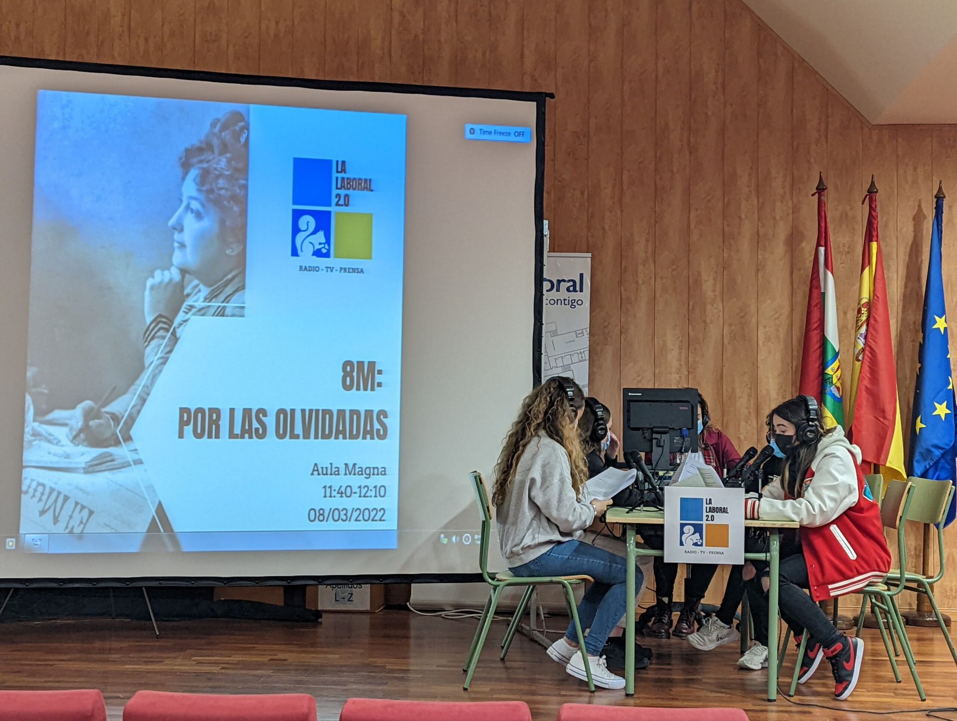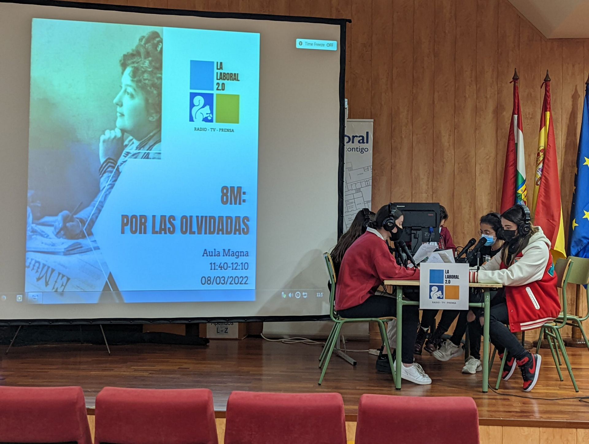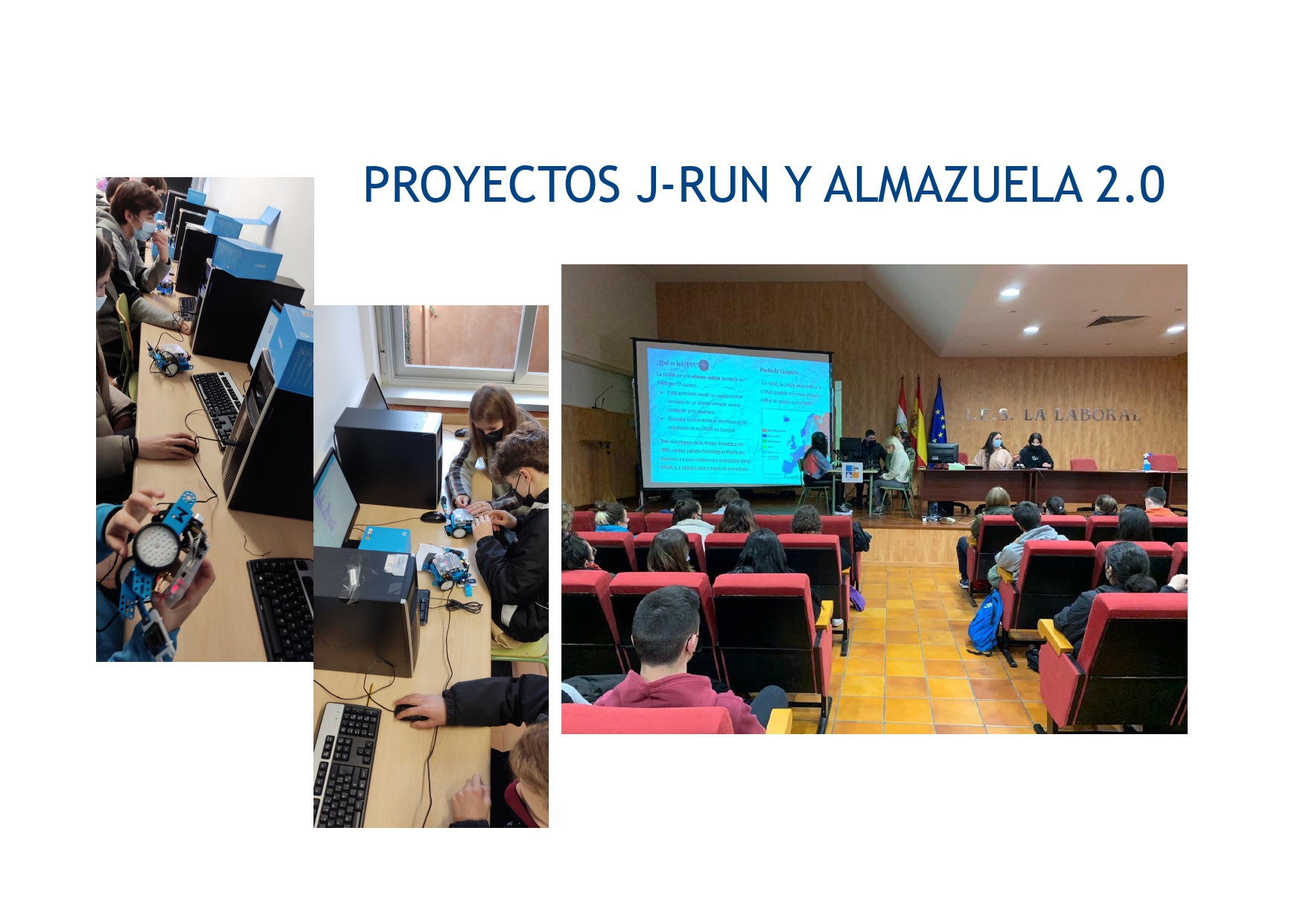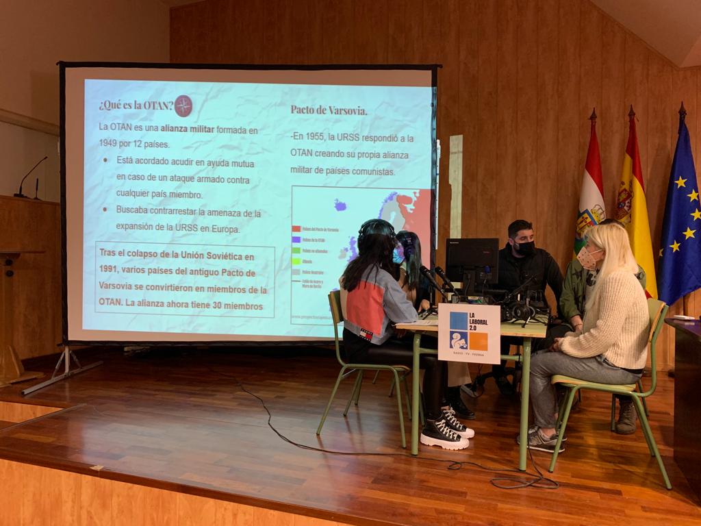 Se trata de un nuevo proyecto de radio, prensa y televisión que ha dinamizado considerablemente la vida del centro y está consiguiendo la colaboración de distintos departamentos para organizar iniciativas variopintas, desde la celebración de fechas señaladas hasta entrevistas marcadas por la actualidad o por algún trabajo concreto en una materia. Los departamentos implicados en el proyecto son los siguientes: Lengua y Literatura, Física y Química, Filosofía, Inglés y Matemáticas. Podéis ver todas las actividades programadas con este proyecto en su Sites: La Laboral 2.0