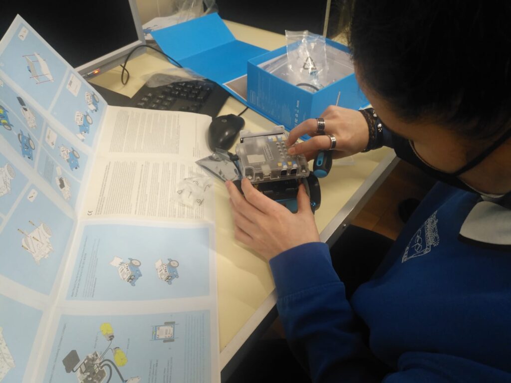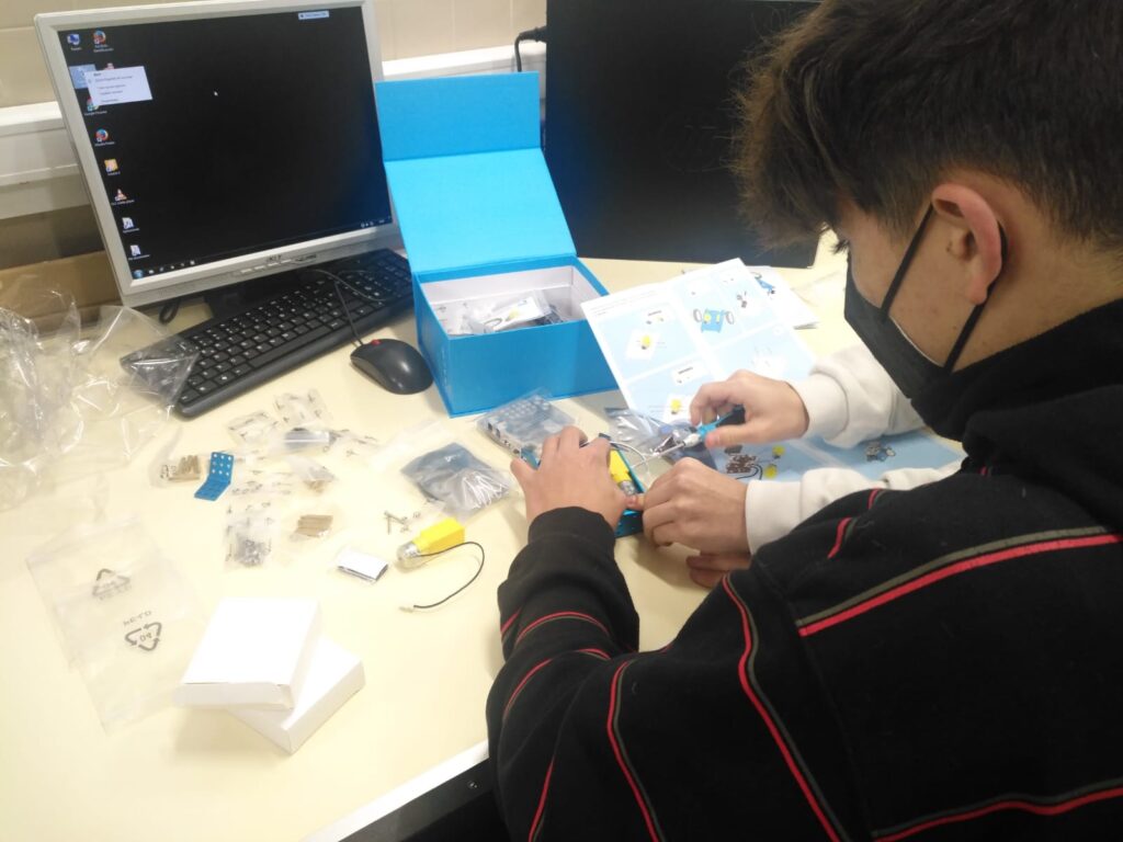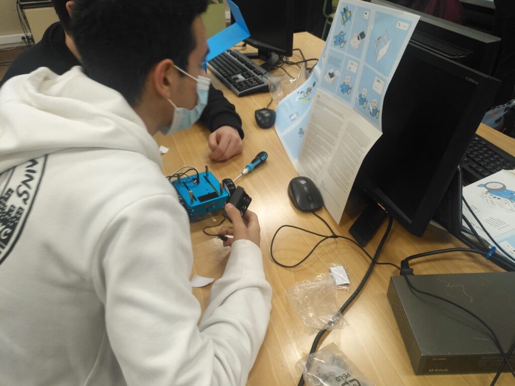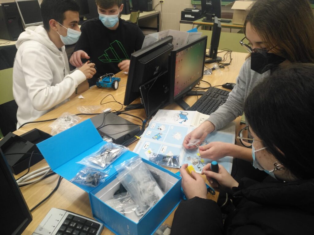 Los profesores del Departamento de Tecnología Ignacio Herreros y Arturo Martínez han participado durante este curso  2021-22 con sus alumnos de bachillerato en el PIE J-Run montando y probando el funcionamiento de los robots M-Bot, que se han distribuido a otros centros para su uso en sus aulas TIC.