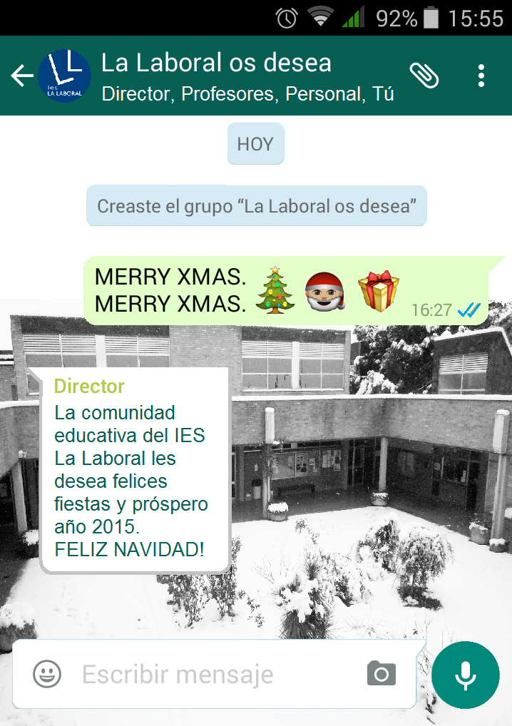 El Departamento de Artes Plásticas decidió, en reunión extraordinaria de 3 de diciembre, que la tarjeta ganadora absoluta del “Concurso Tarjetas Navideñas IES La Laboral 2015” sea la de