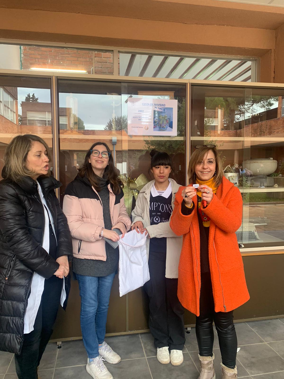 Como todos los años, los alumnos de FP de Grado Básico de Servicios Administrativos sortearon una Cesta de Navidad que ellos mismos preparan. El pasado día viernes 16 de diciembre, nuestra compañera Julia Santos, del Departamento de Lengua y Literatura, escogió el boleto nº 182. Este boleto lo vendió el alumno de FPGBO Jorge Uruñuela Saavedra y el afortunado fue Yeremi López, alumno del IES La Laboral.