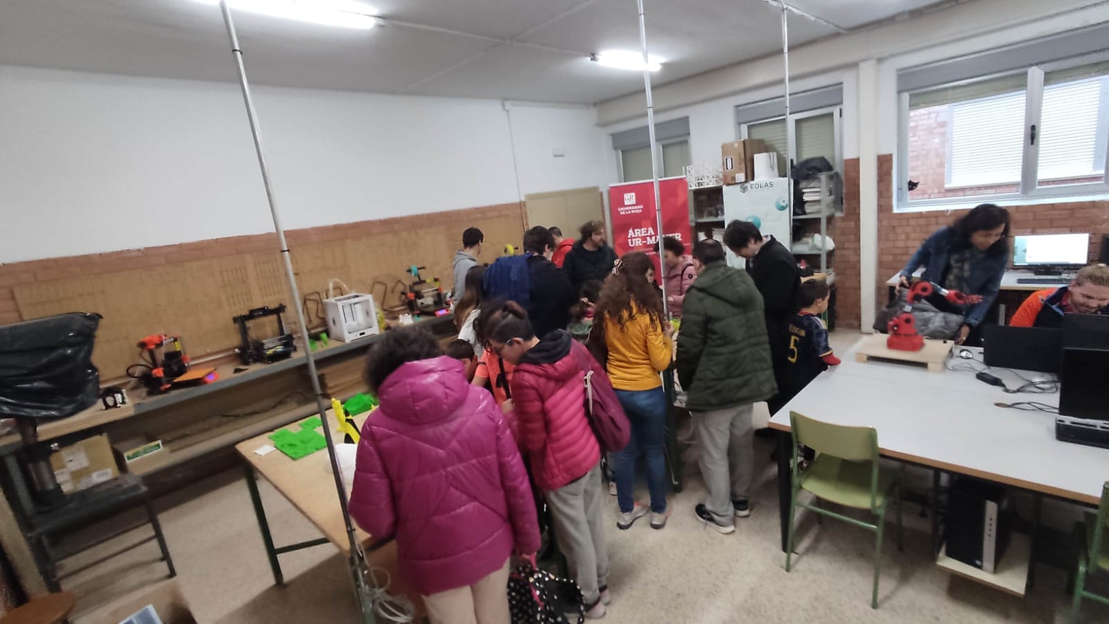 Al evento acudieron padres, alumnos y profesores. Alpha Pernía Espinoza, profesora de la Universidad de la Rioja, junto con D. Sergio Peciña Marqueta, Ingeniero de Producción de EOLAS Prints, impartieron una interesante charla sobre la impresión 3D centrada en sus orígenes, evolución y aplicaciones actuales. Posteriormente, Sergio dirigió un taller práctico sobre las posibilidades de esta herramienta. Los asistentes también pudieron contemplar una exposición de objetos impresos en 3D.