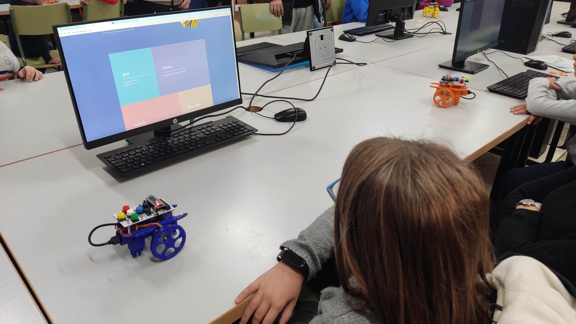 En el mismo taller de impresión 3D, Arturo, junto con nuestro compañero Nacho Herreros Martín, también ayudaron a realizar unas prácticas con el robot «Escornabot», un artefacto muy versátil que resulta ideal para introducir el pensamiento computacional a los más pequeños.