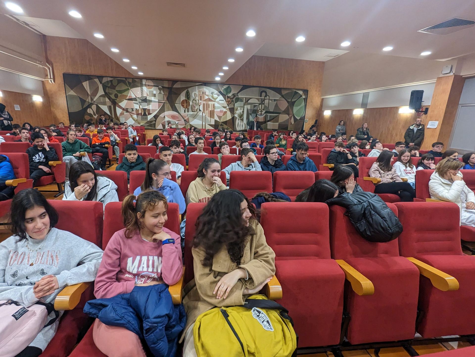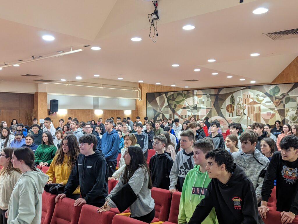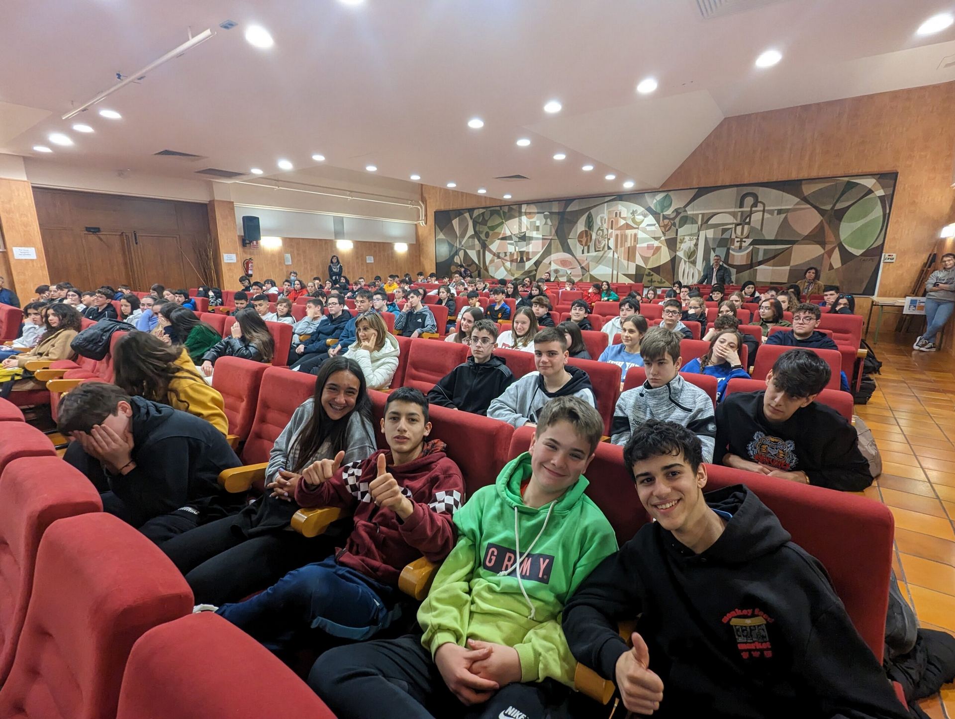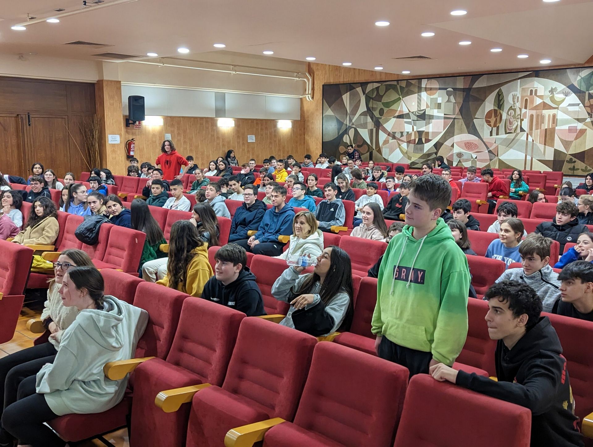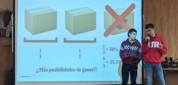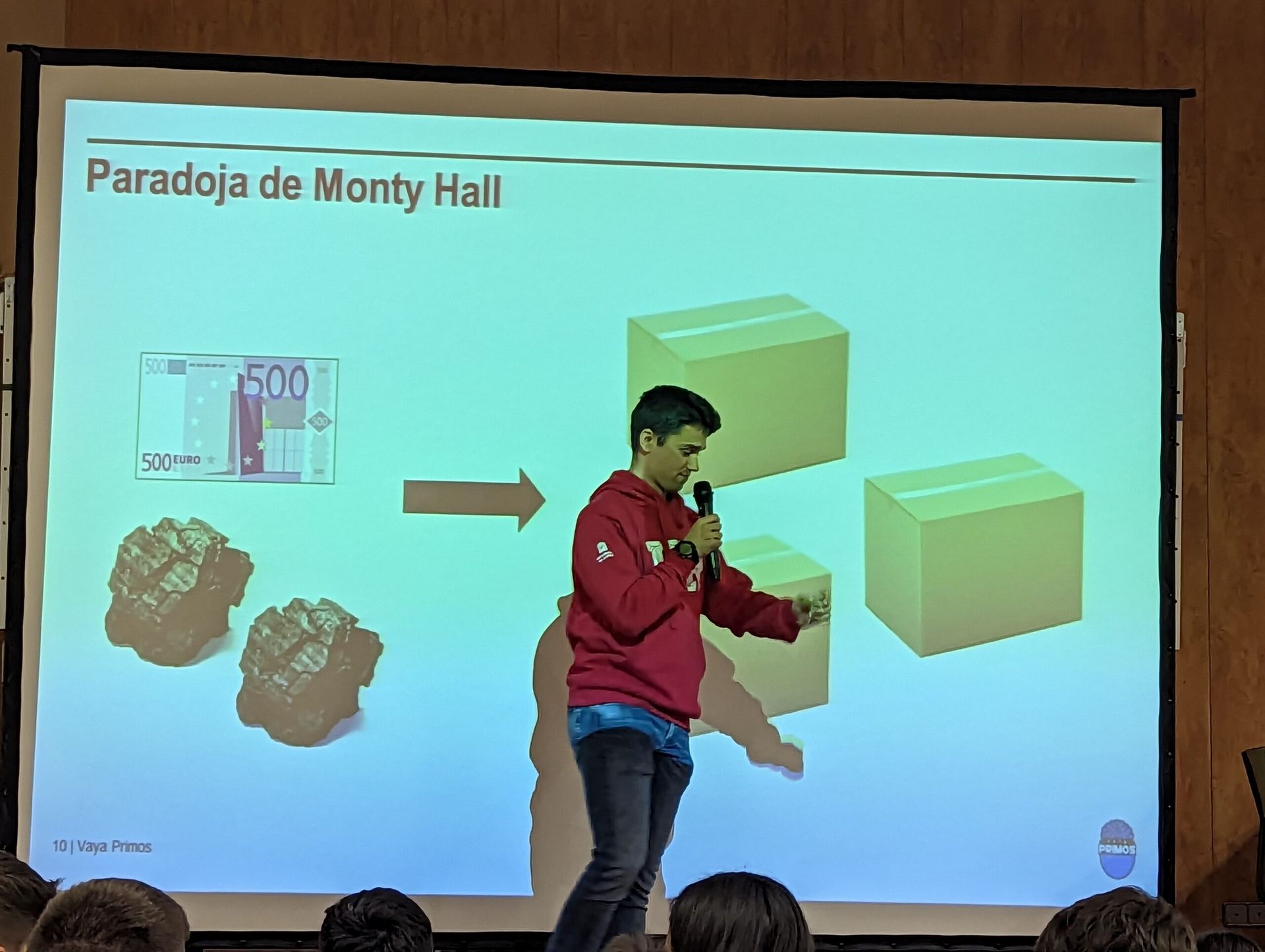 Todos los alumnos de 3° de ESO han asistido al Aula Magna para presenciar la charla matemática de “Vaya Primos”, un grupo de estudiantes universitarios del Grado en Matemáticas de la Universidad de La Rioja que se dedican a realizar charlas divulgativas para acercarnos las matemáticas a situaciones y ejemplos de la vida cotidiana.
