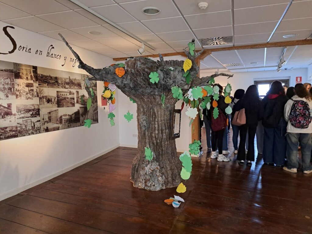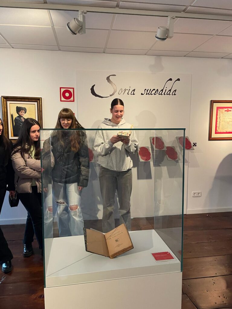 A lo largo de esa ruta pudimos caminar por las calles sorianas y disfrutar de representativos lugares como la casa de los poetas o el instituto Antonio Machado, en el que accedimos al aula en la que el poeta ofrecía sus clases de francés a principios del siglo XX. Además, en este paseo vimos las pensiones en las que el escritor sevillano se alojó en su estancia en esta ciudad y en donde conoció a su futura esposa, Leonor, a quien dedicó sus más sentidos versos. Tuvimos la oportunidad de sacarnos fotos con las famosas esculturas de la pareja en las que se representa la foto de su boda.