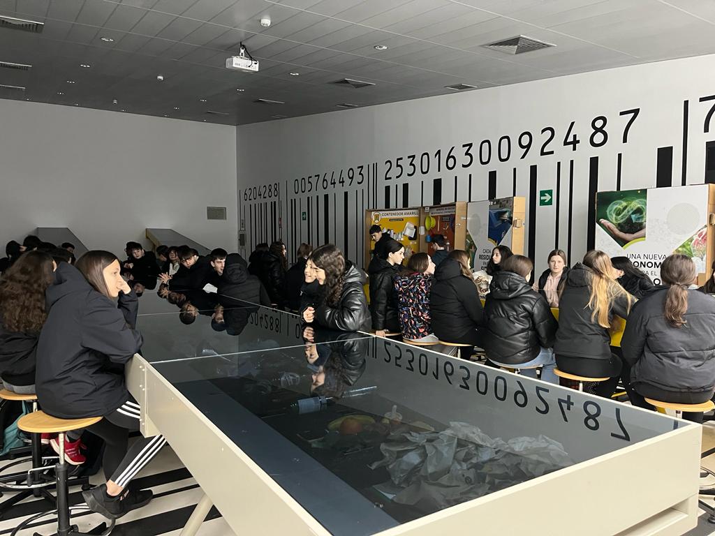 A lo largo de un recorrido muy didáctico, que incluía animaciones, vídeos, juegos y hasta un pequeño recorrido en tren por las instalaciones, comprendimos mucho mejor qué es eso de la economía circular. Los alumnos siguieron con interés las aclaraciones acerca de las 3 erres: Reducir, Reutilizar y Reciclar, y descubrieron los distintos tratamientos que reciben los residuos para la obtención de biogas, electricidad o compostaje, entre otros reaprovechamientos.